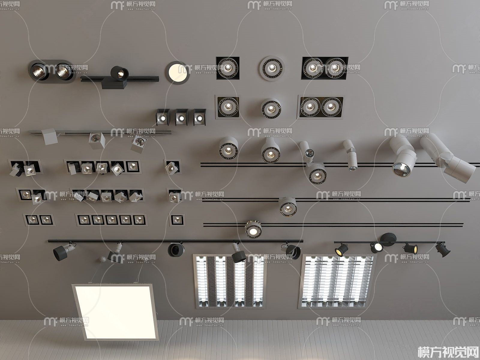 现代轨道灯格栅灯筒灯组合3d模型(ID:0000072)