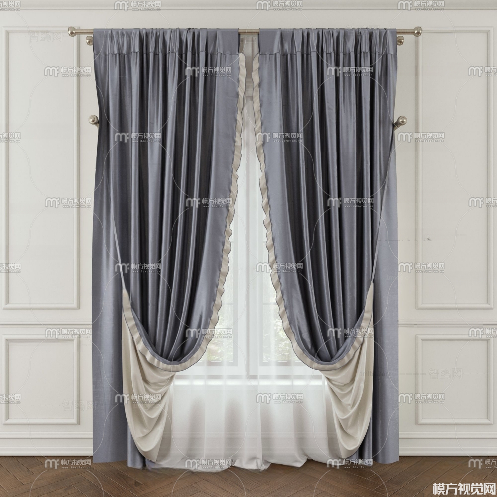 现代窗帘3D模型(ID:0007203)