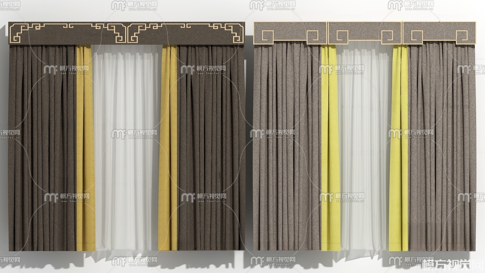 新中式窗帘3D模型(ID:0007230)