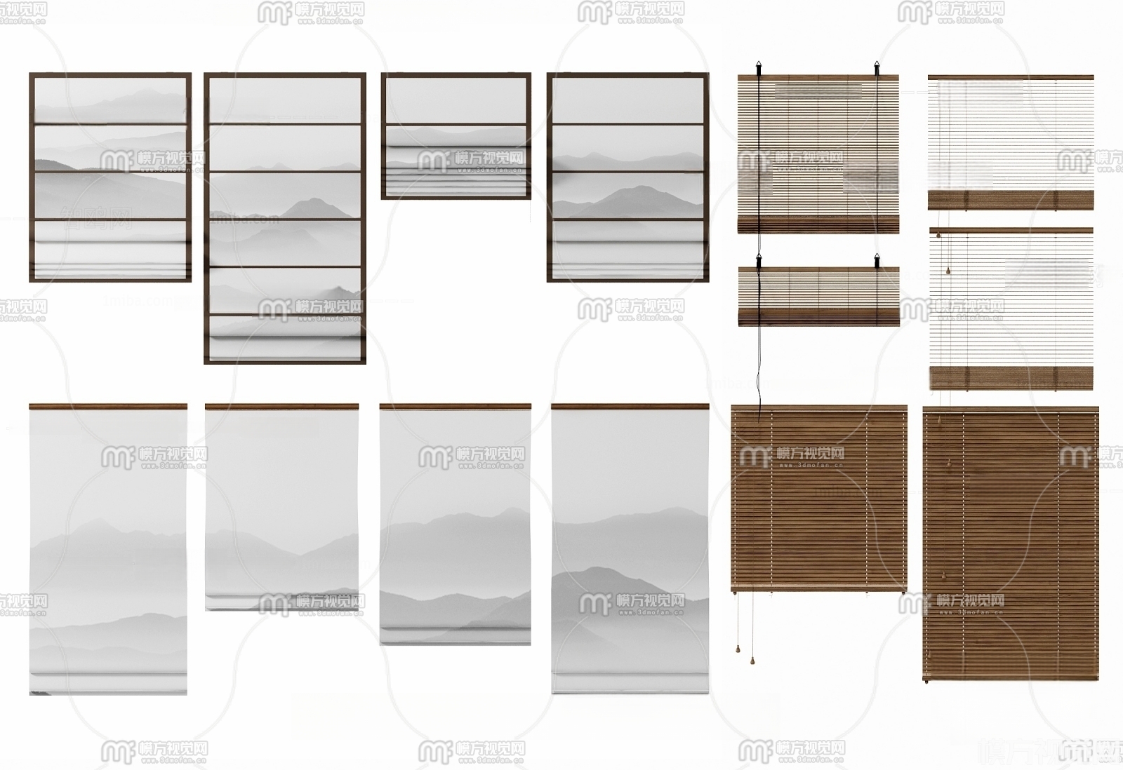 新中式卷帘 百叶窗帘3D模型(ID:0007234)