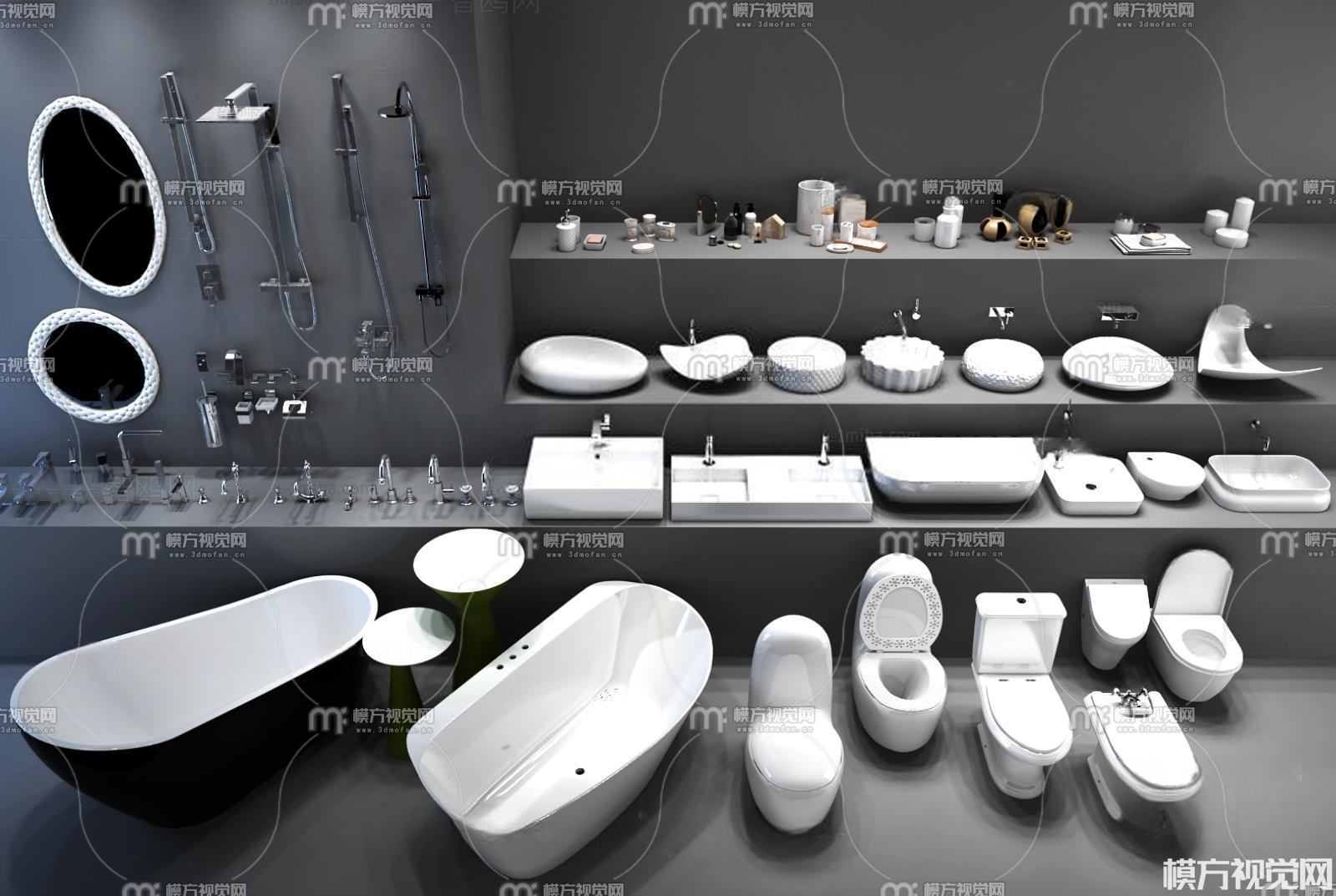 现代洗手盆 浴缸 马桶 花洒3D模型(ID:0000727)