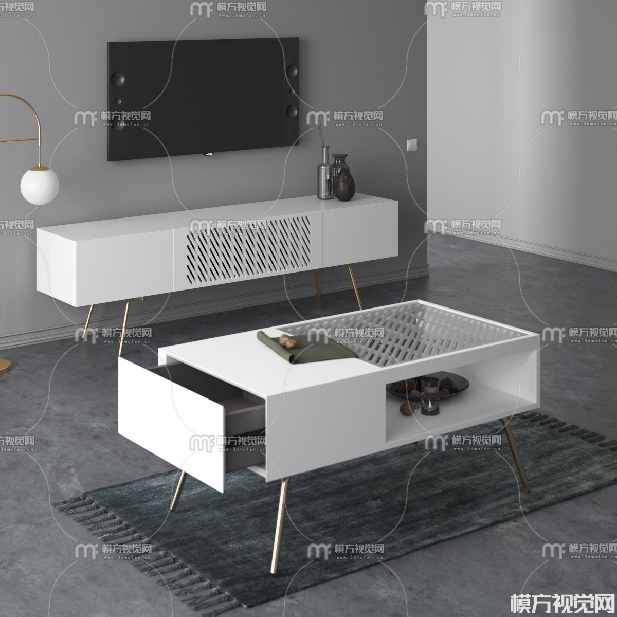 现代电视柜 茶几3D模型(ID:0007283)
