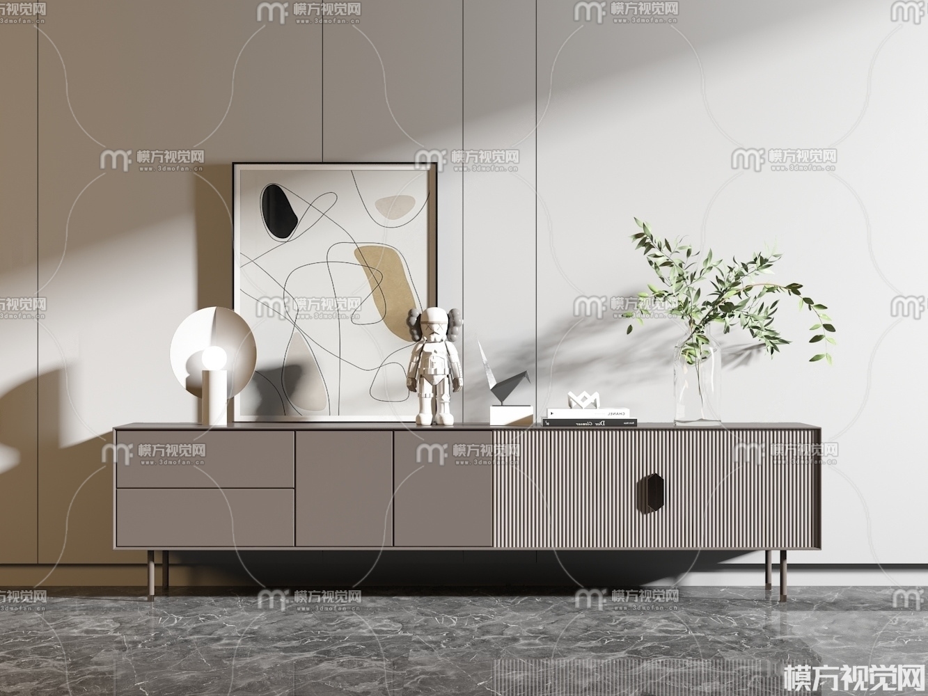 现代电视柜3D模型(ID:0007381)