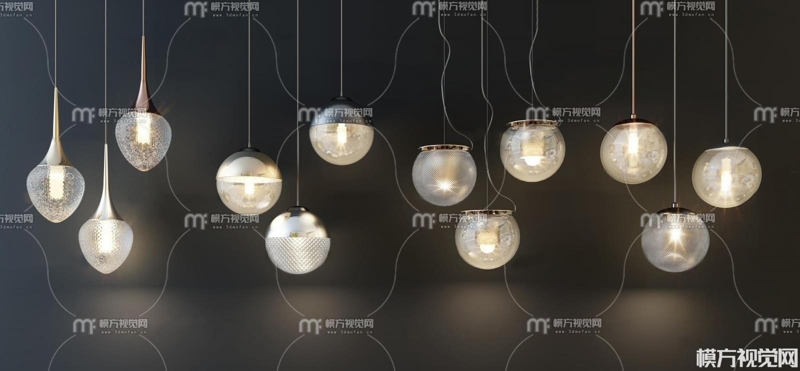 现代玻璃吊灯3D模型(ID:0007421)