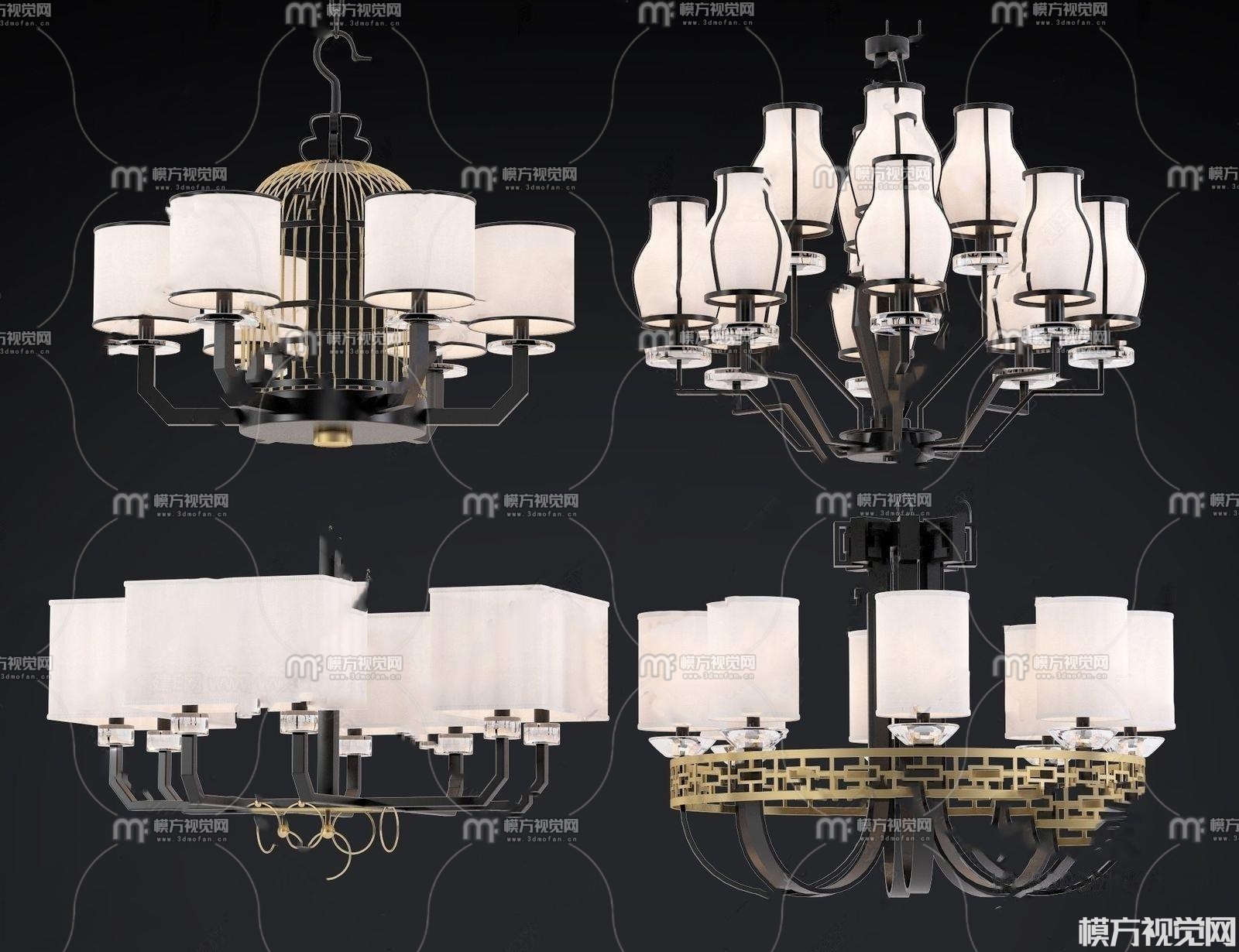 新中式吊灯3D模型(ID:0007501)