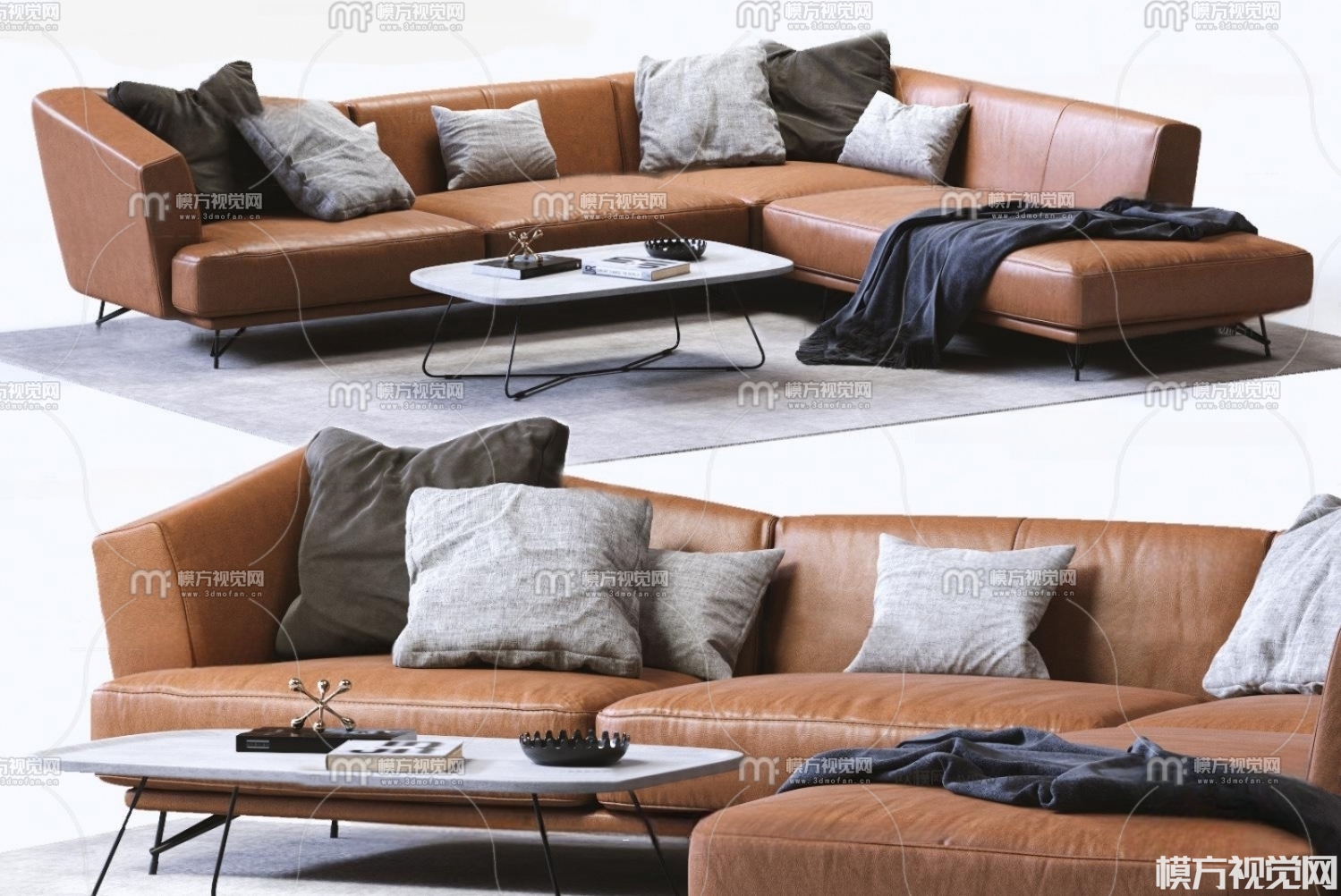 现代皮革沙发茶几组合3D模型(ID:0000754)
