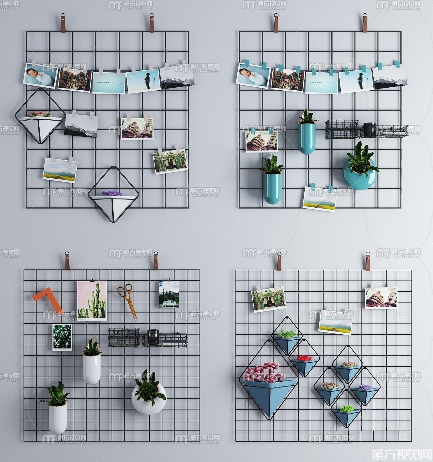 现代铁艺墙饰绿植装饰挂件组合3D模型(ID:0007560)