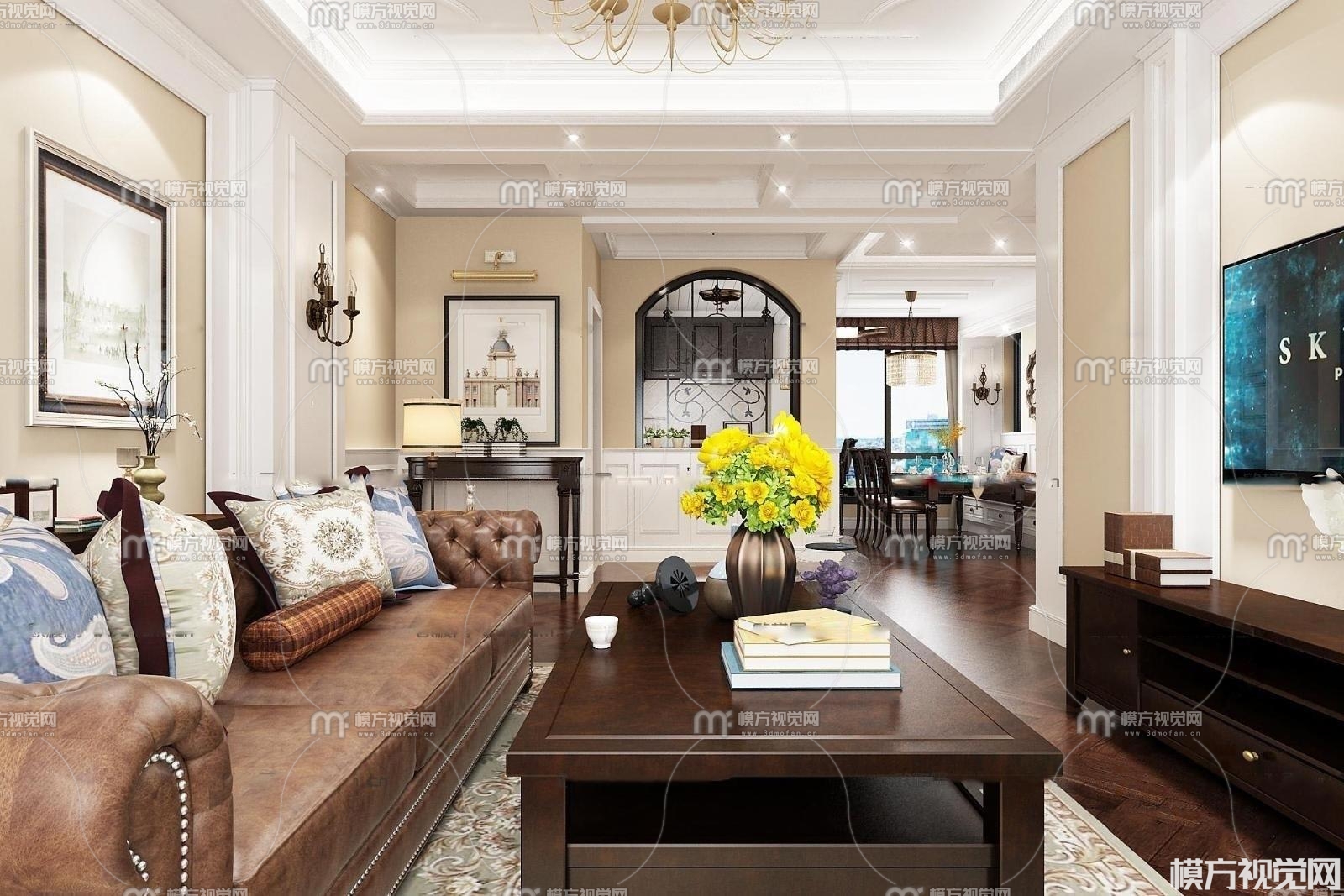 美式客厅3D模型(ID:0007574)