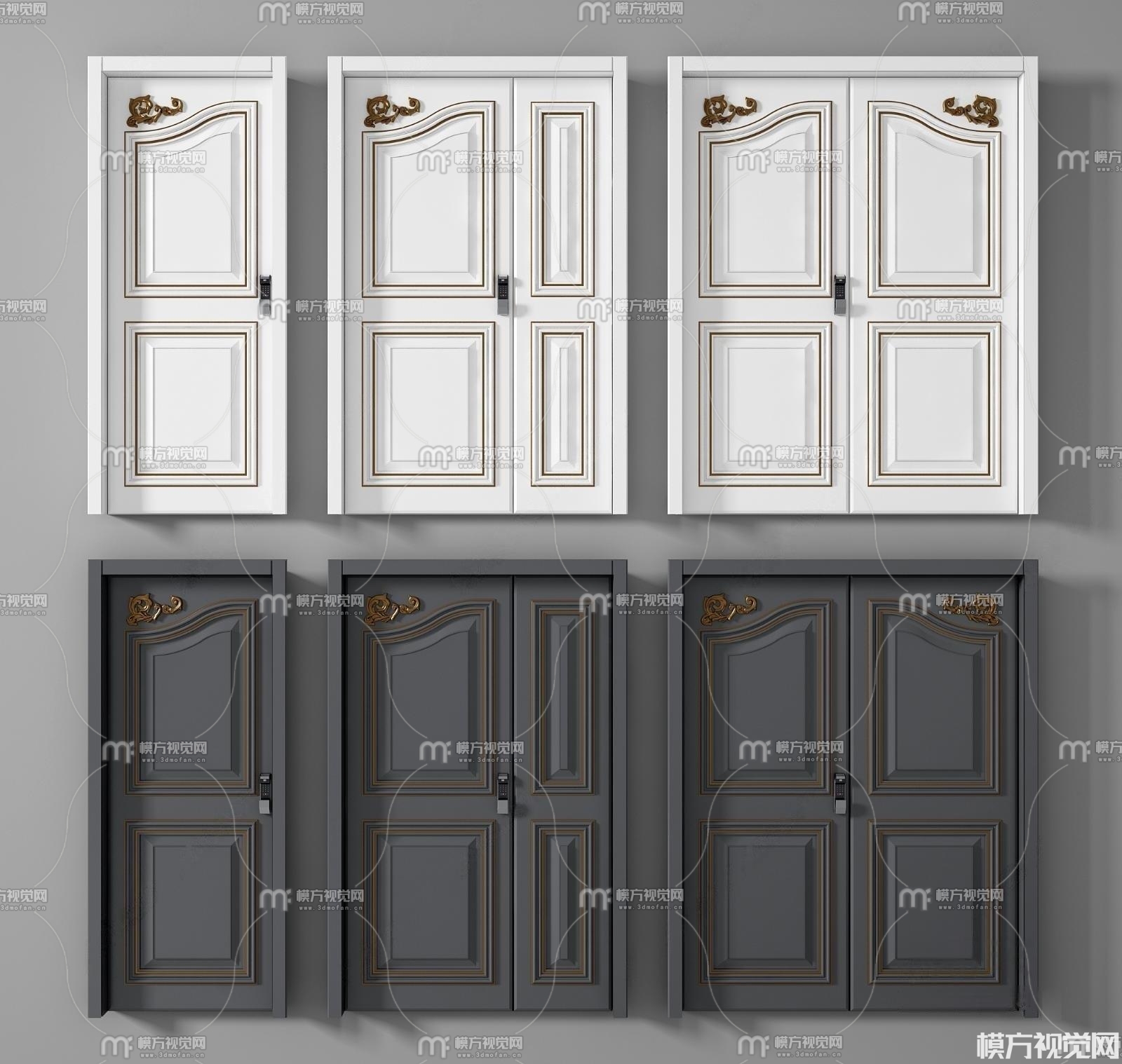 简欧入户门 房门3D模型(ID:0007653)