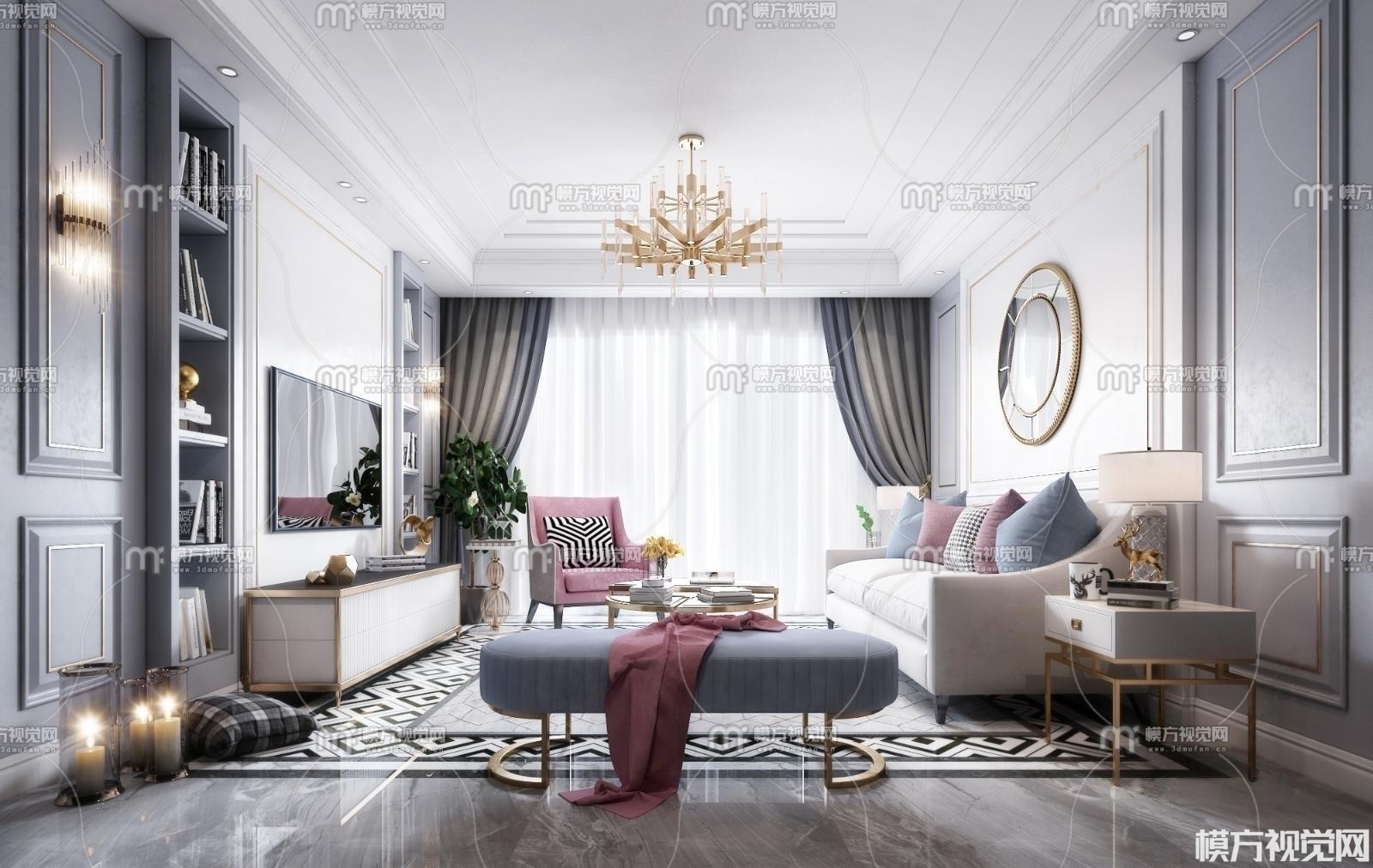 简欧客厅3D模型(ID:0007709)