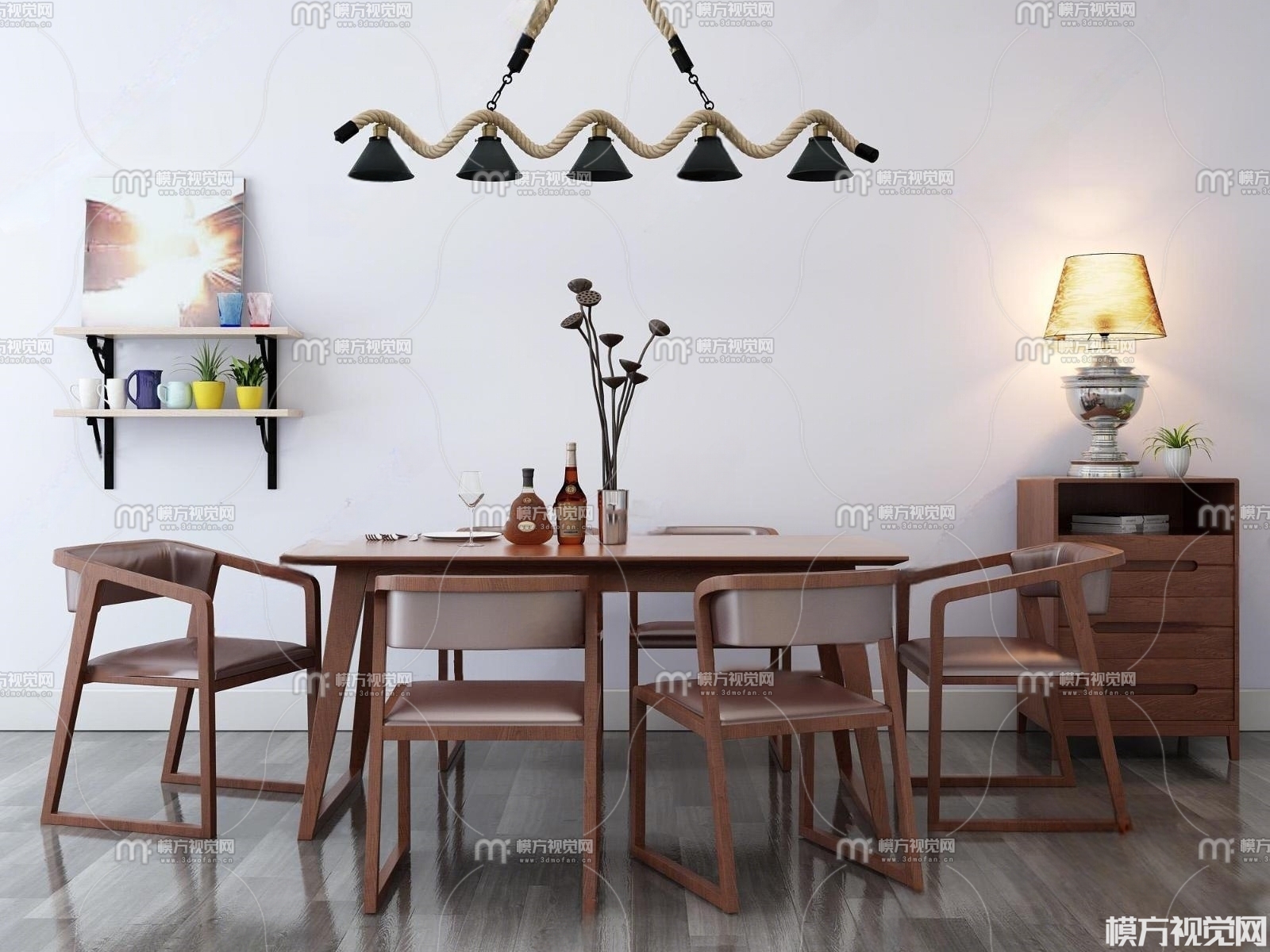 现代餐桌椅组合 吊灯3D模型(ID:0000779)