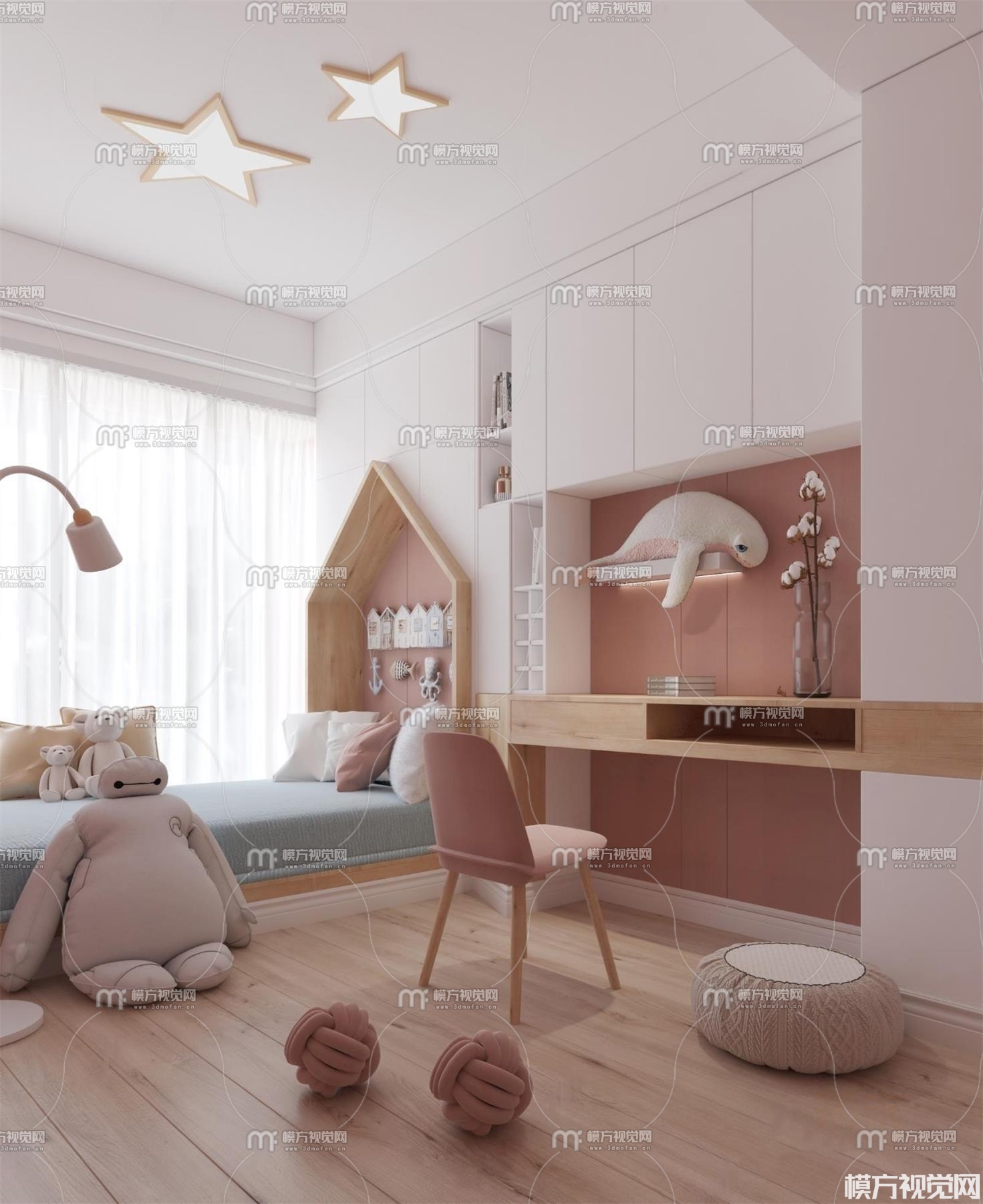 北欧榻榻米卧室3D模型(ID:0007865)
