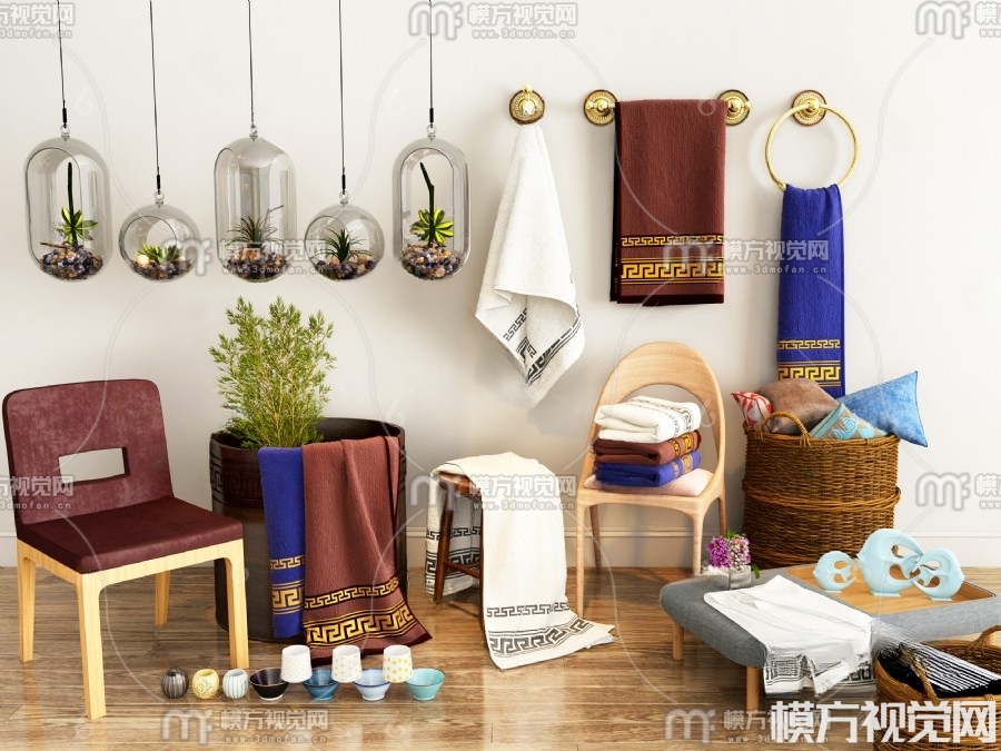 现代毛巾 收纳篮 吊灯 椅子3D模型(ID:0000794)