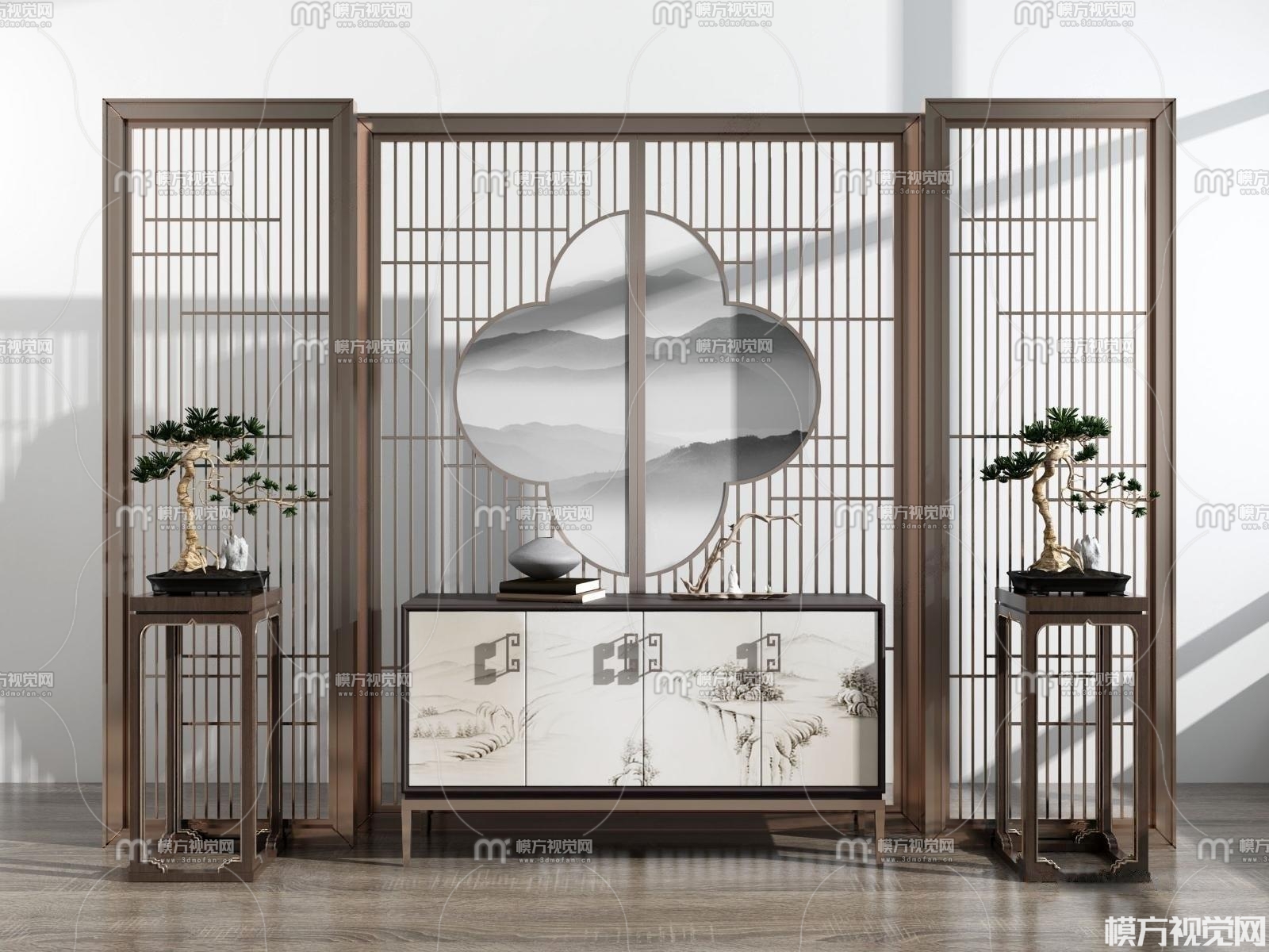 新中式绿植盆栽屏风隔断3D模型(ID:0008065)