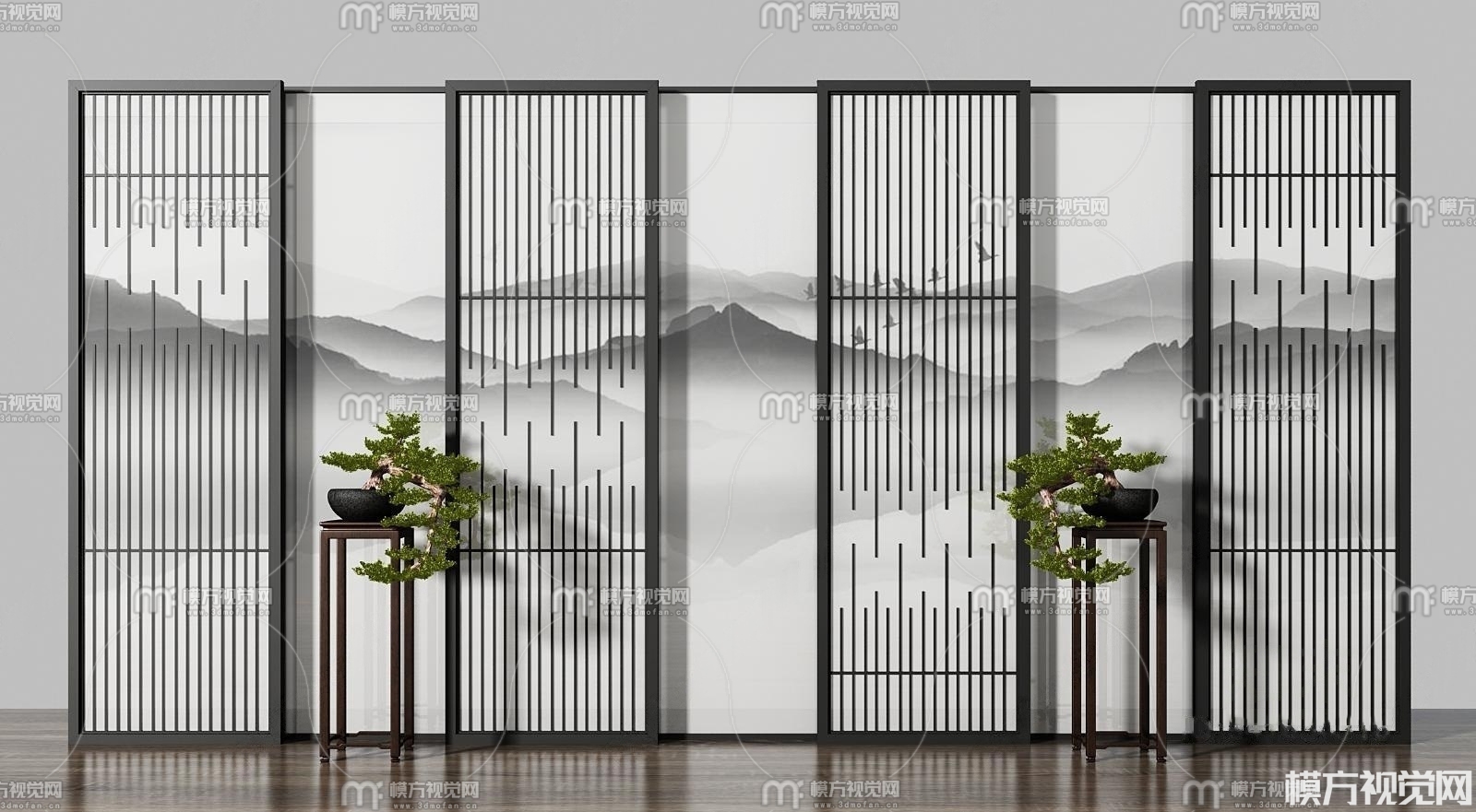 新中式绿植盆栽屏风隔断3D模型(ID:0008067)