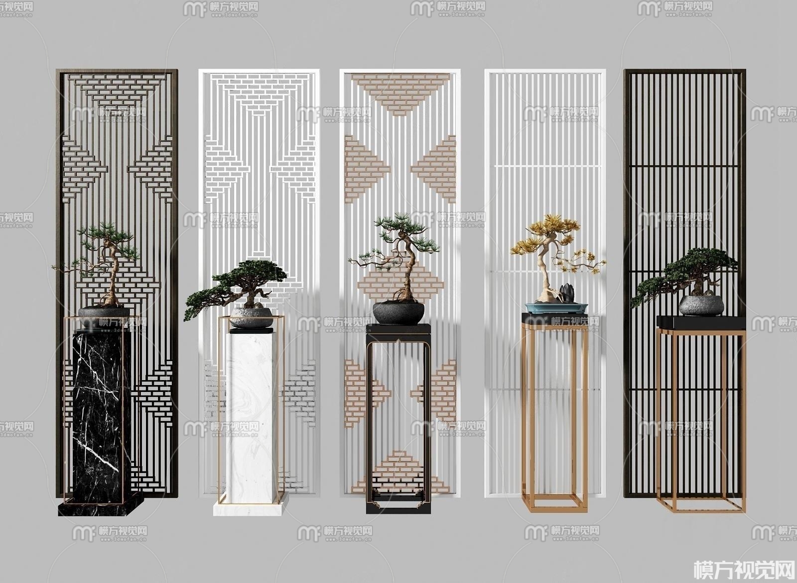 新中式屏风隔断植物摆件3D模型(ID:0008071)