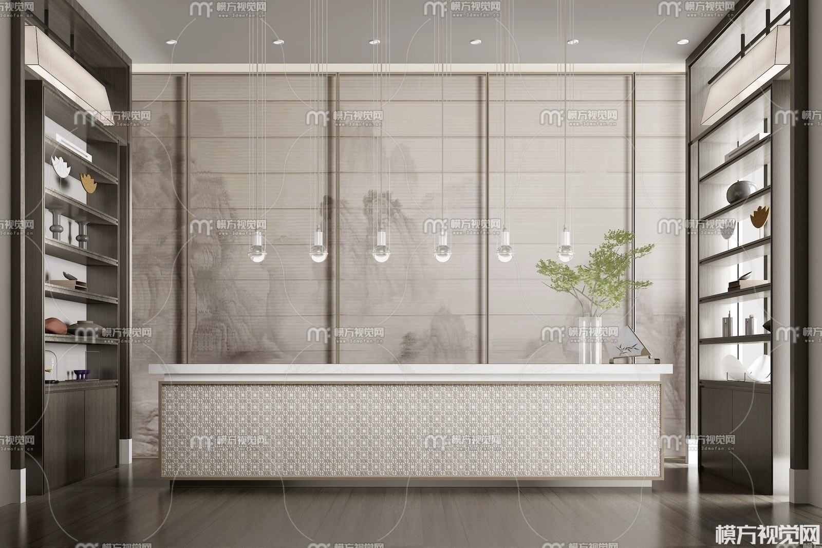 新中式前台接待3D模型(ID:0008089)