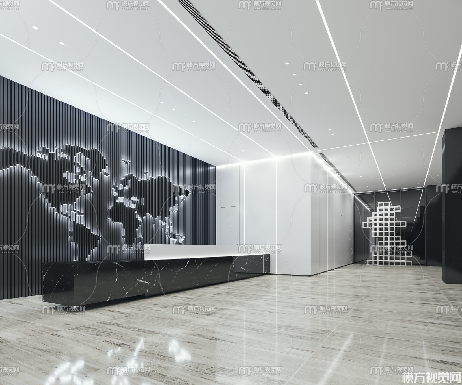 现代办公前台接待3D模型(ID:0008104)