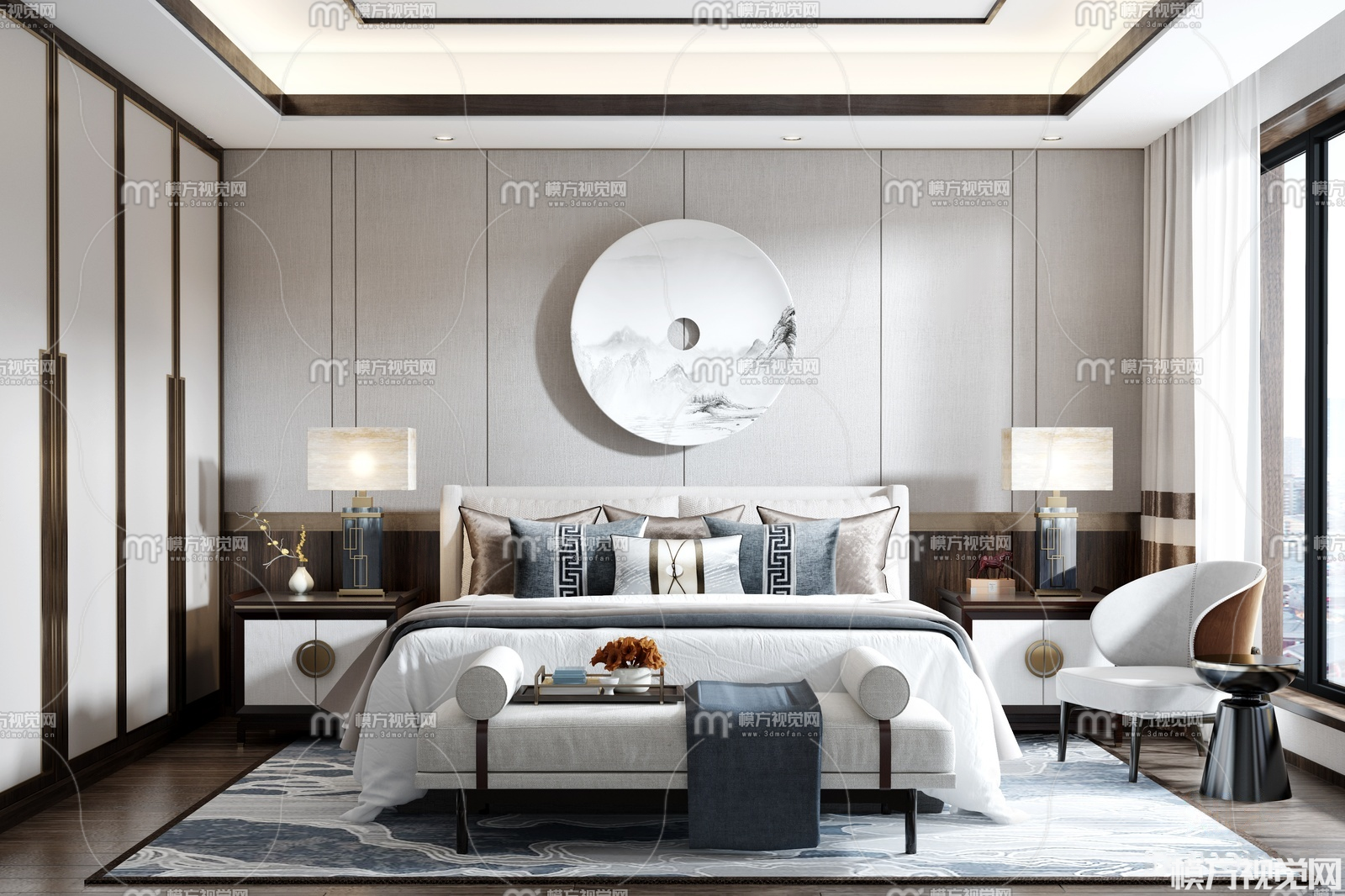 新中式卧室3D模型(ID:0008347)
