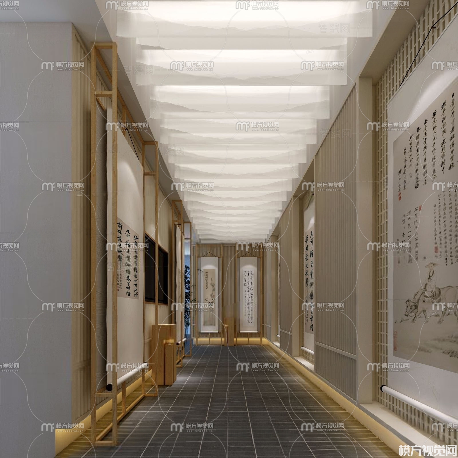 新中式字画展厅3D模型(ID:0008513)
