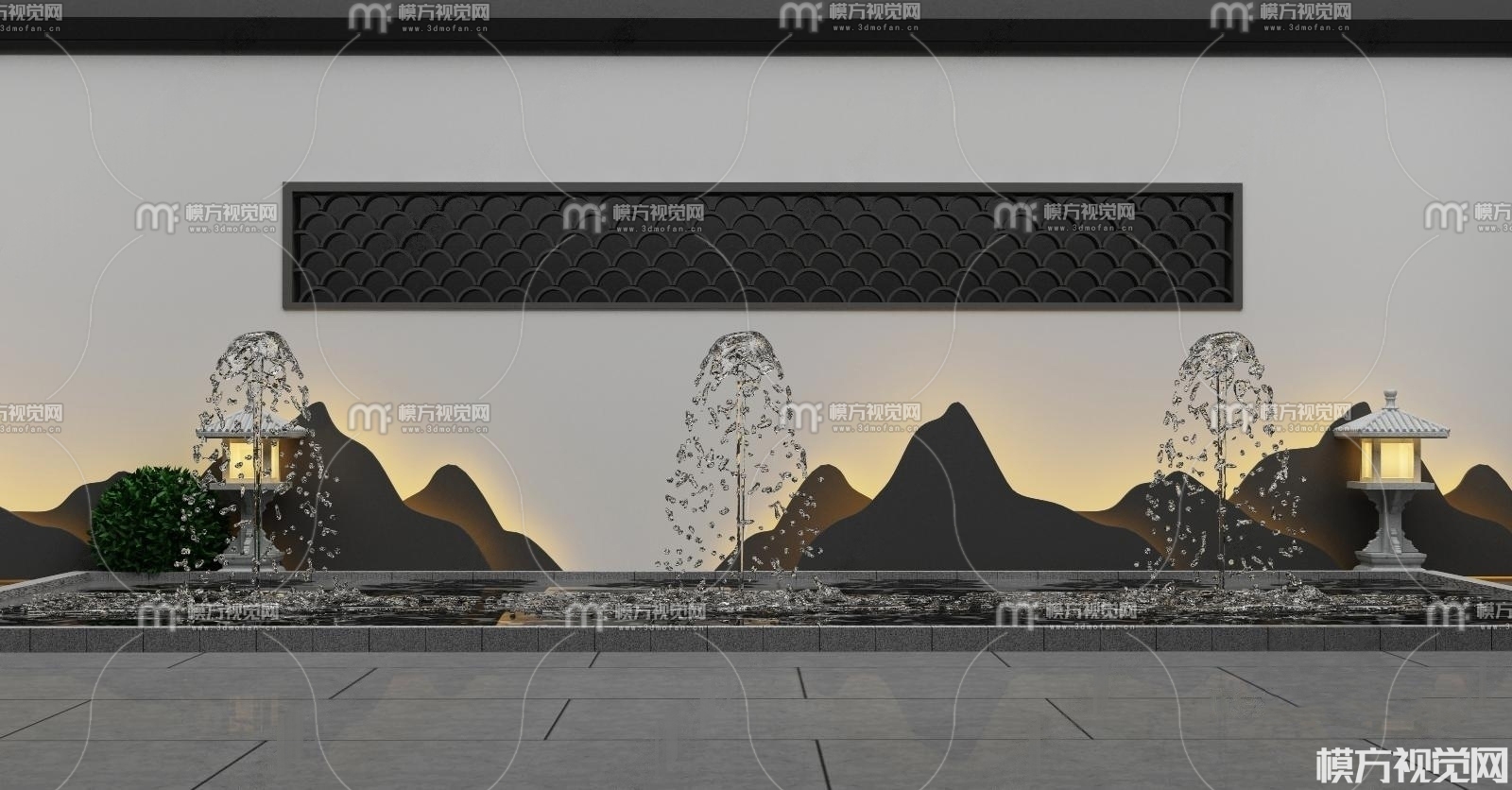 新中式喷泉水景园艺小品3D模型(ID:0008587)