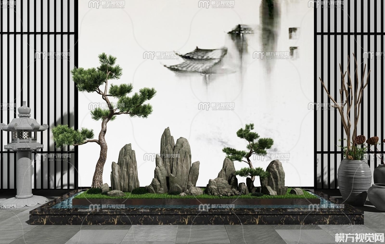 新中式假山水景园艺小品3D模型(ID:0008589)