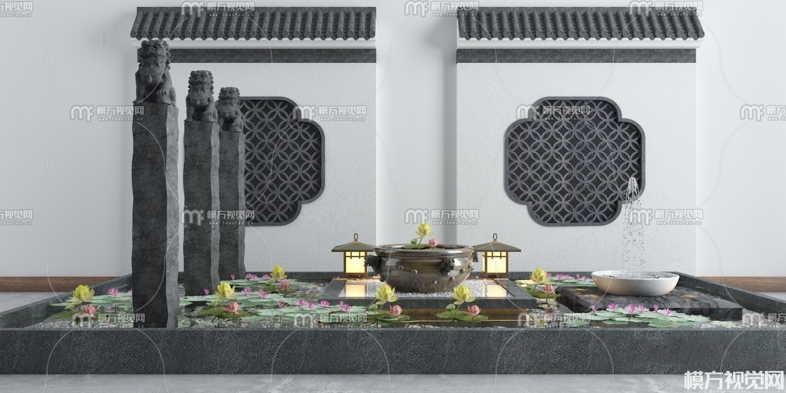 新中式水景 荷花园艺小品3D模型(ID:0008605)