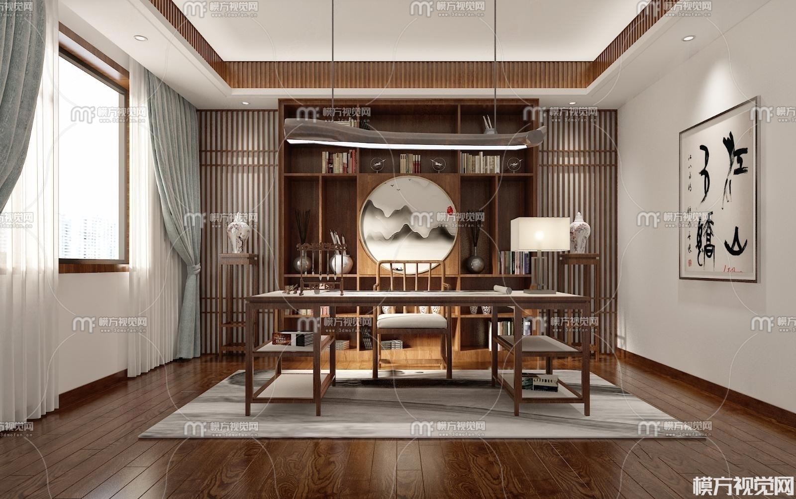 新中式书房3D模型(ID:0008755)