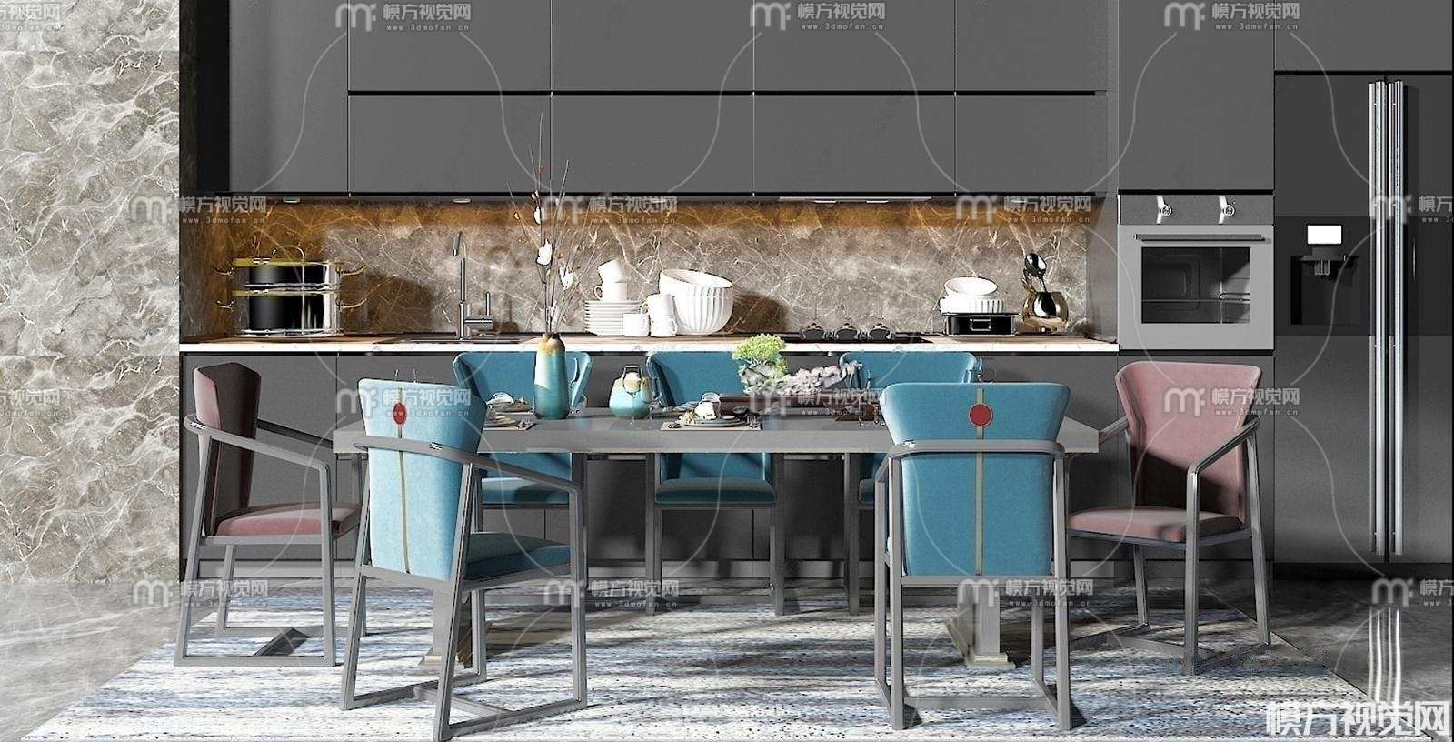 新中式餐桌椅橱柜3D模型(ID:0008760)