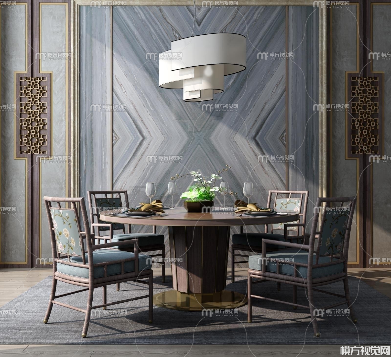 新中式圆形餐桌椅组合3D模型(ID:0008762)
