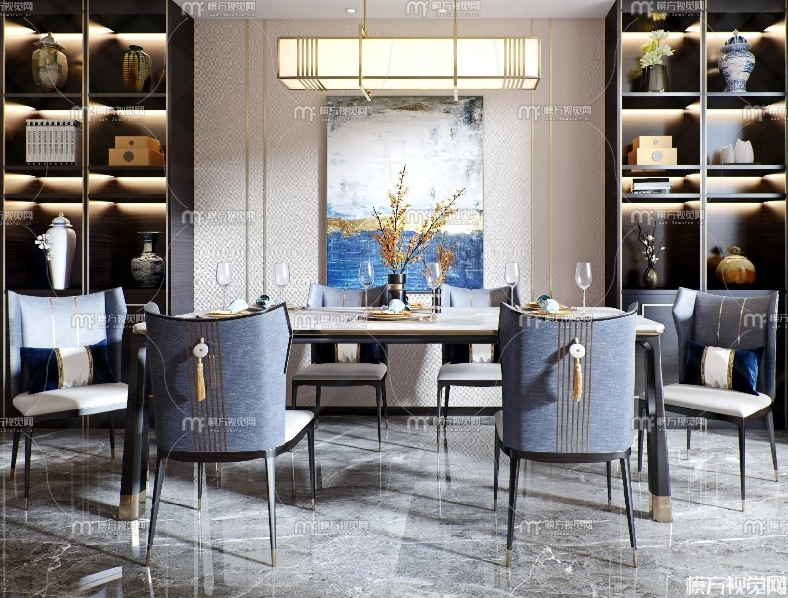 新中式餐桌椅 酒柜3D模型(ID:0008765)