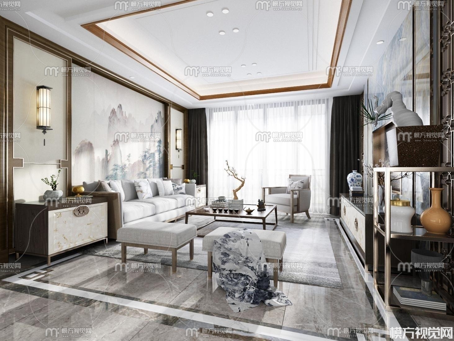 新中式客厅3D模型(ID:0008791)