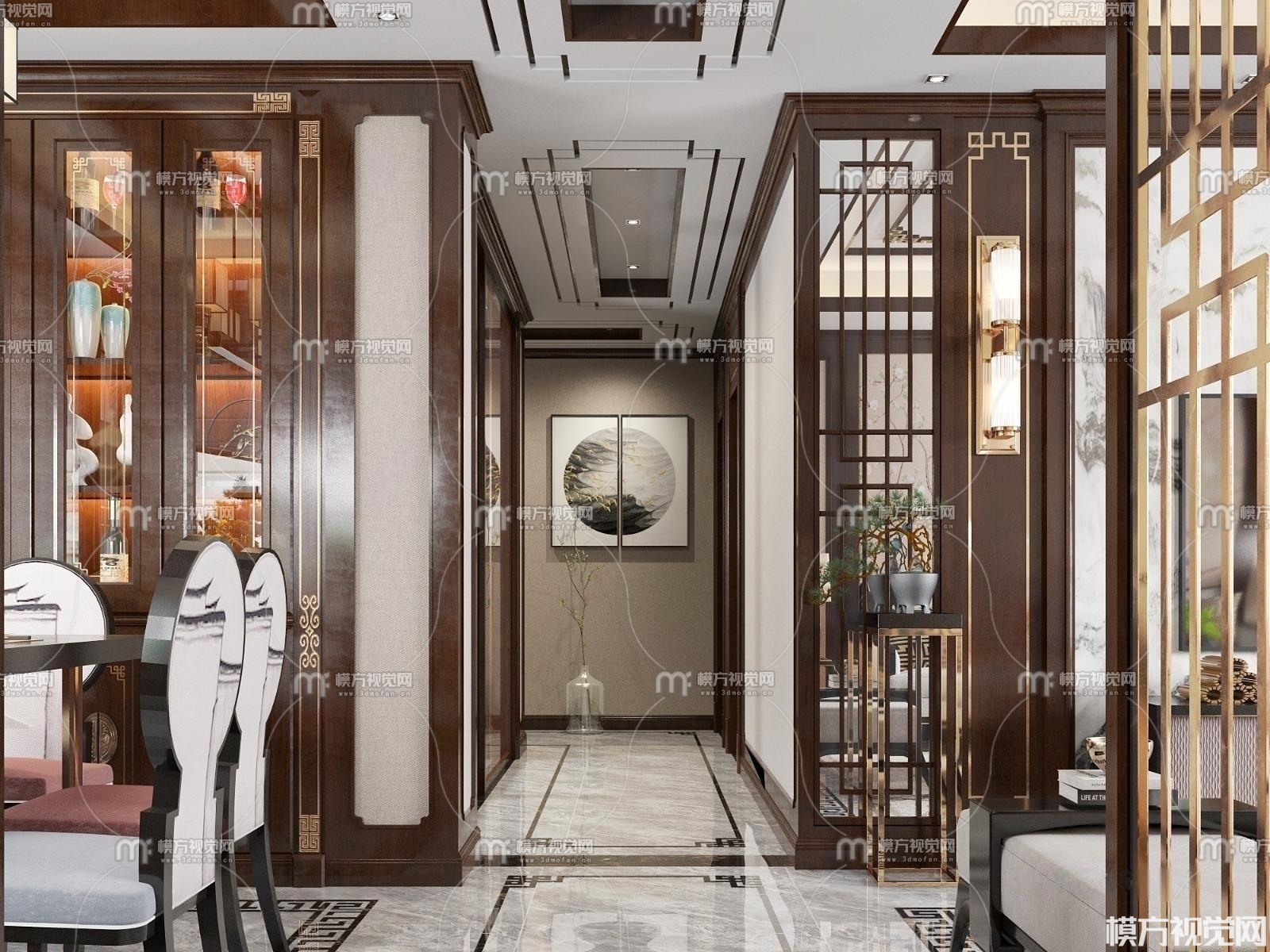 新中式客餐厅3D模型(ID:0008795)