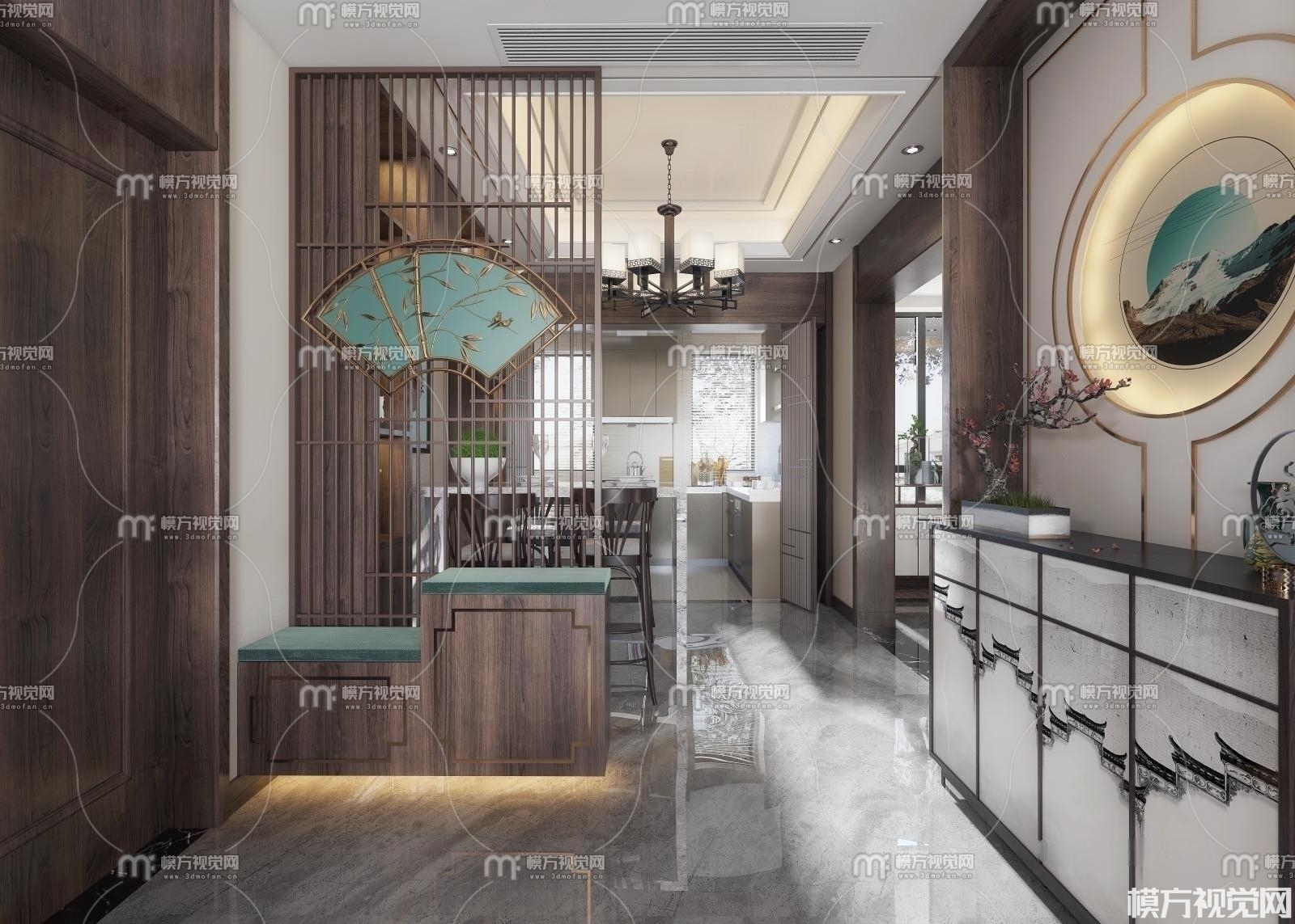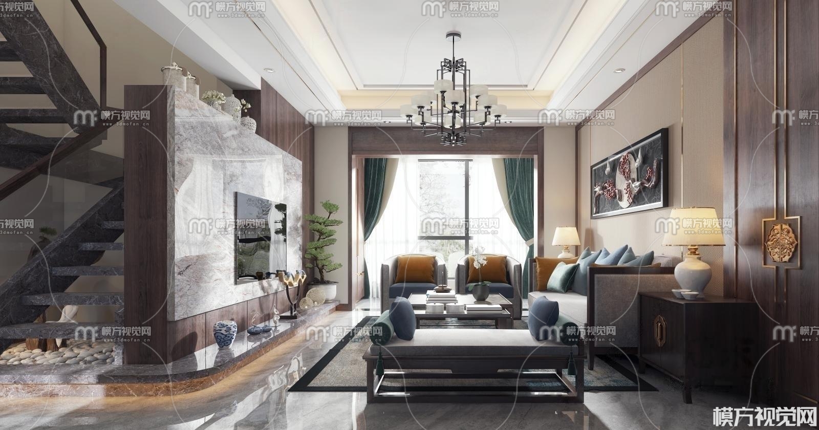 新中式客餐厅3D模型(ID:0008820)
