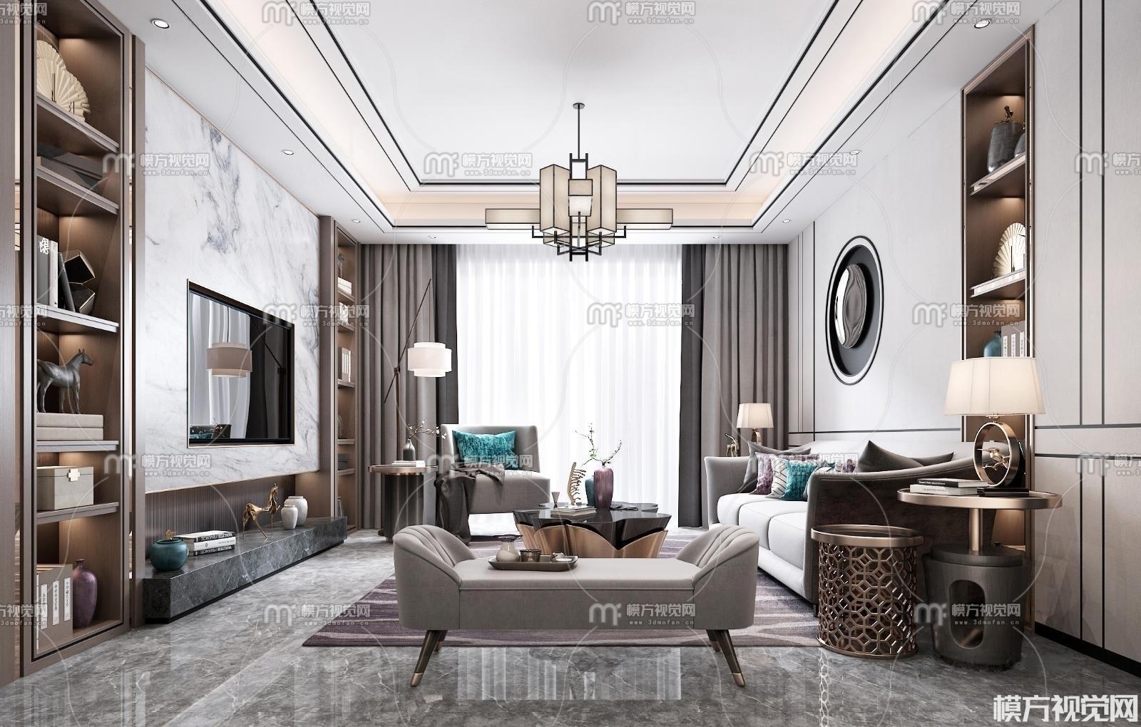 新中式客厅3D模型(ID:0008829)