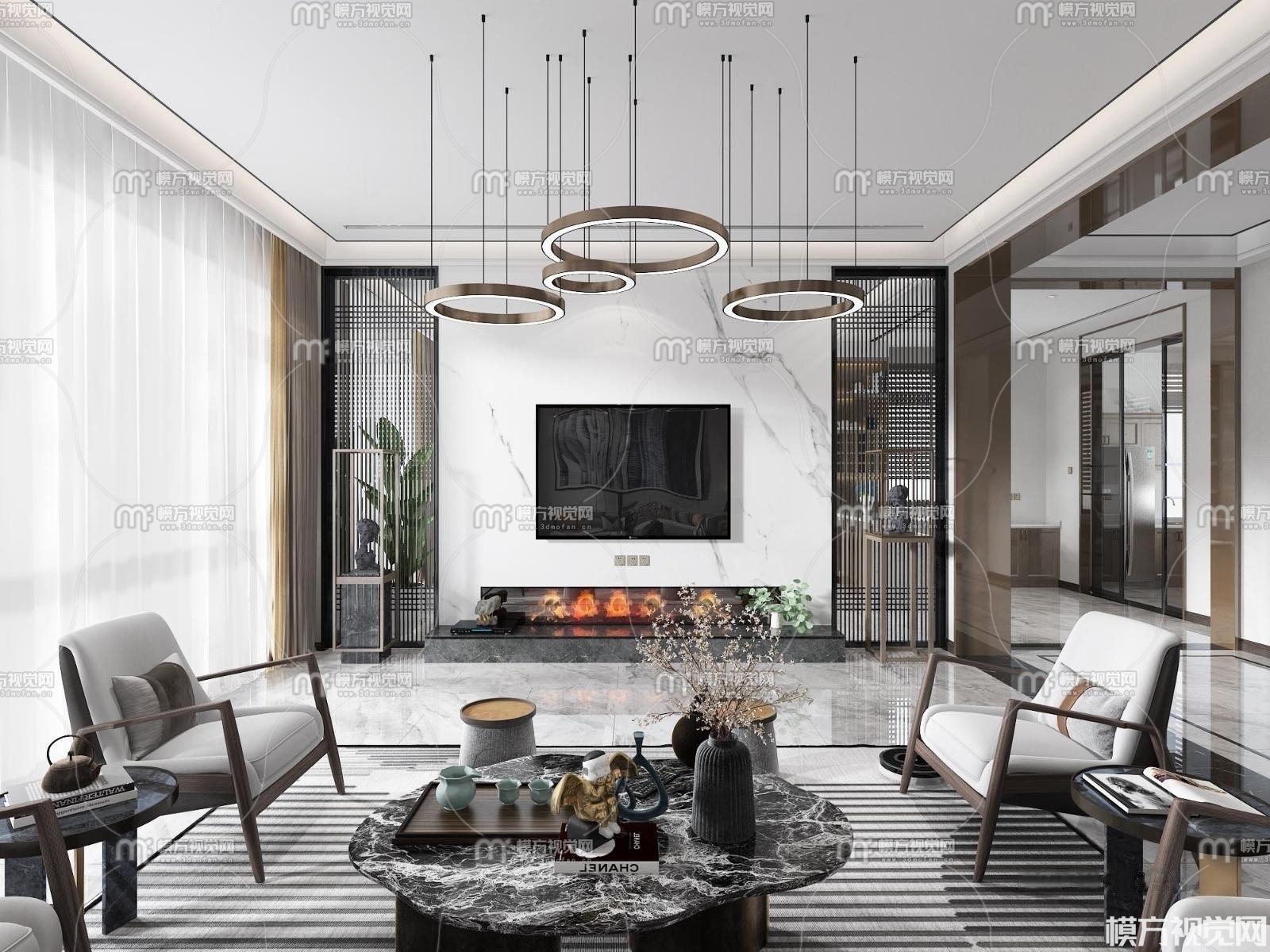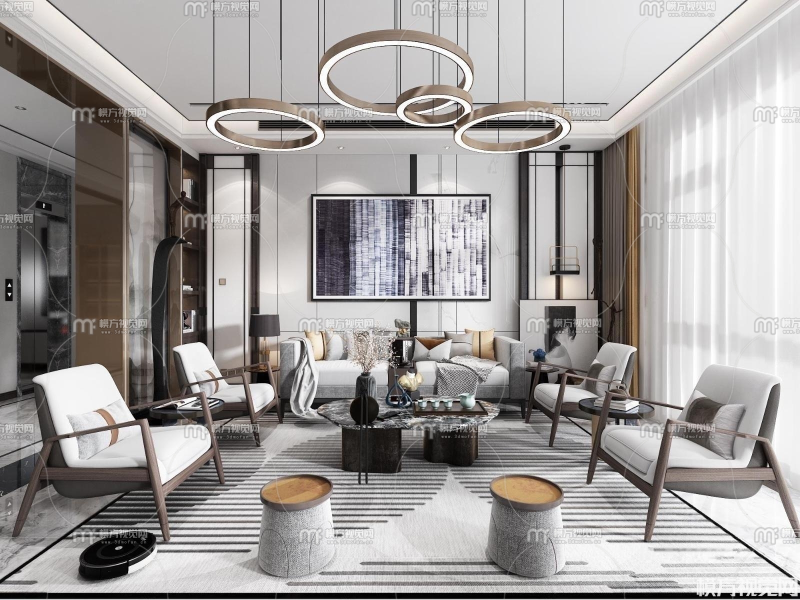 新中式客厅3D模型(ID:0008837)