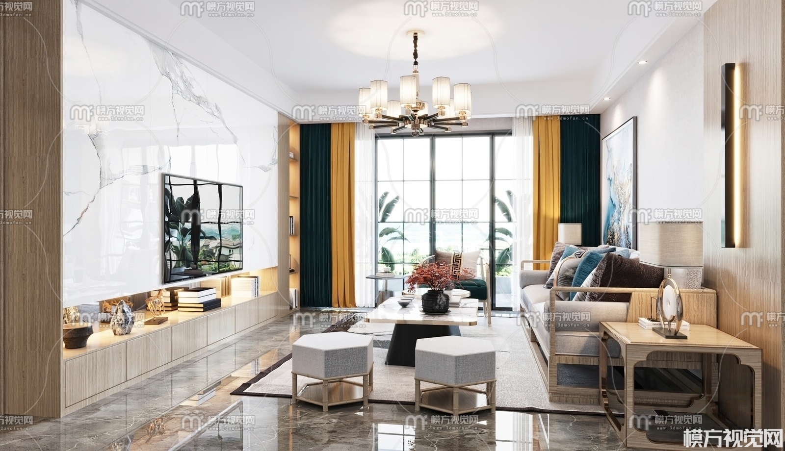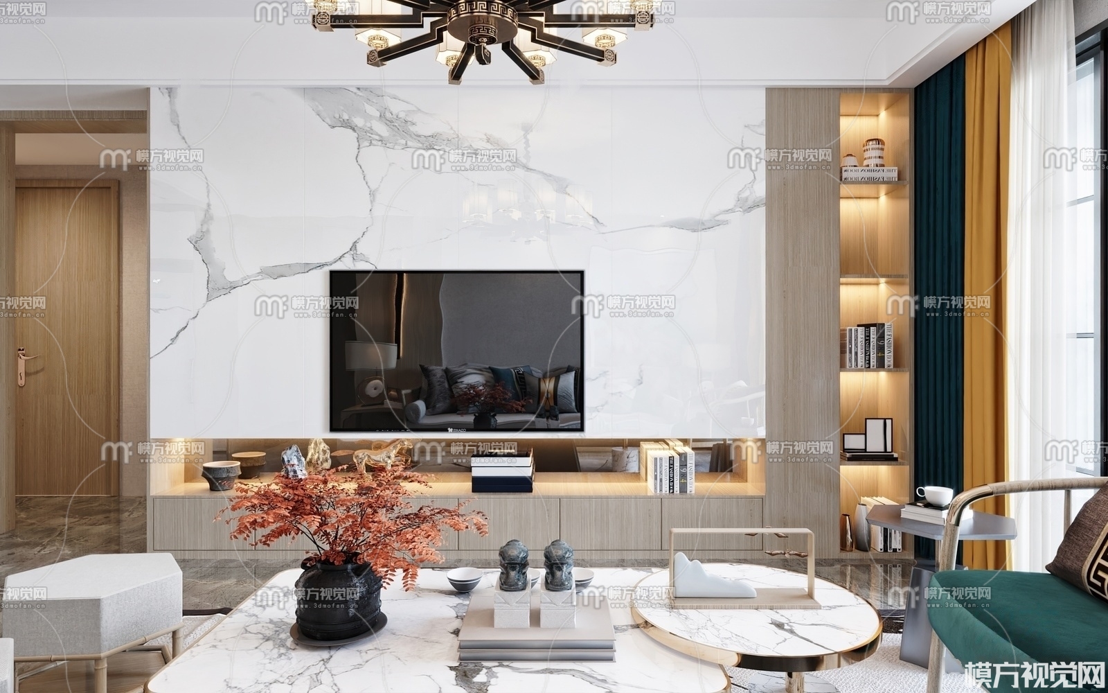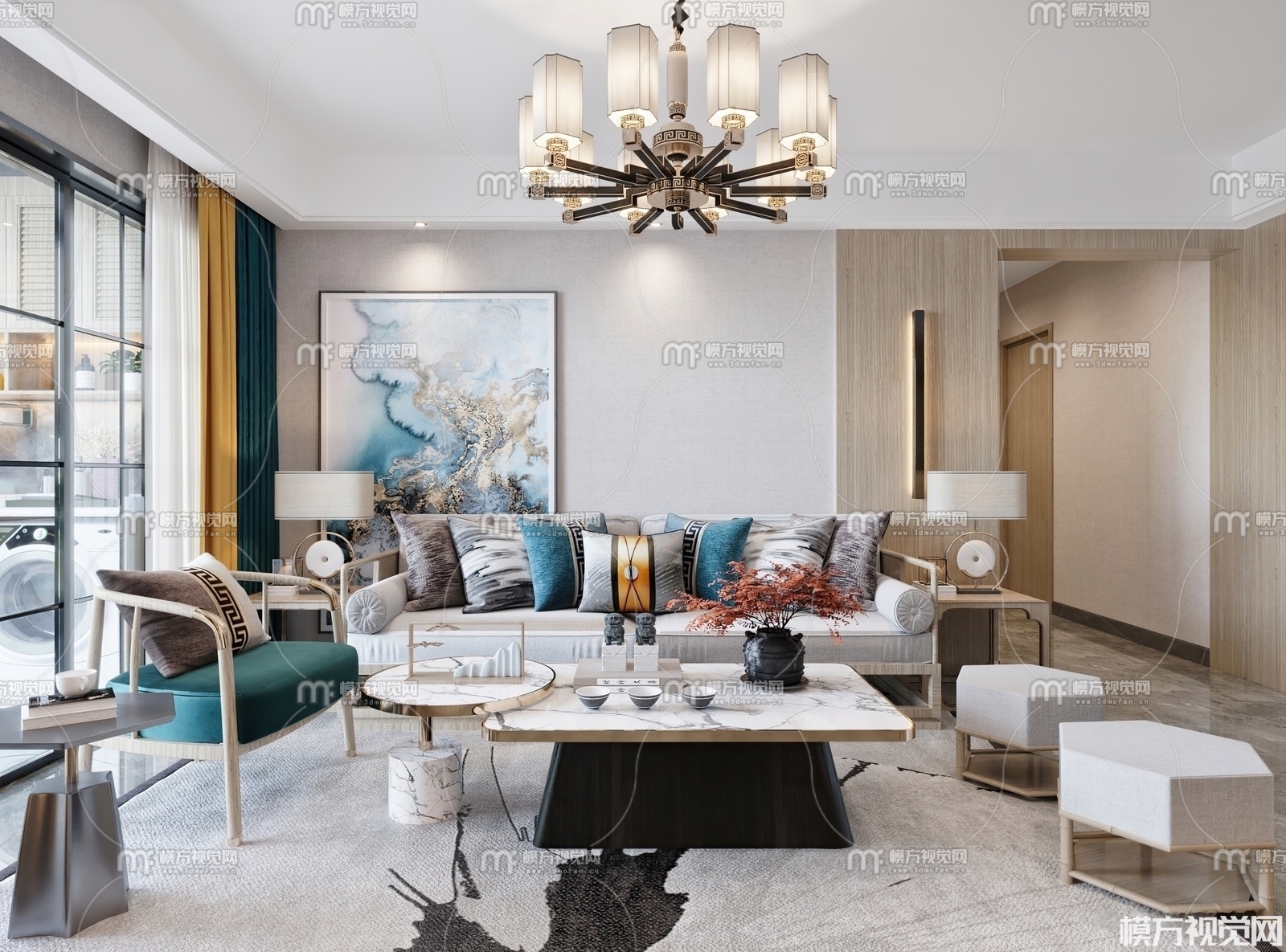 新中式客厅3D模型(ID:0008855)