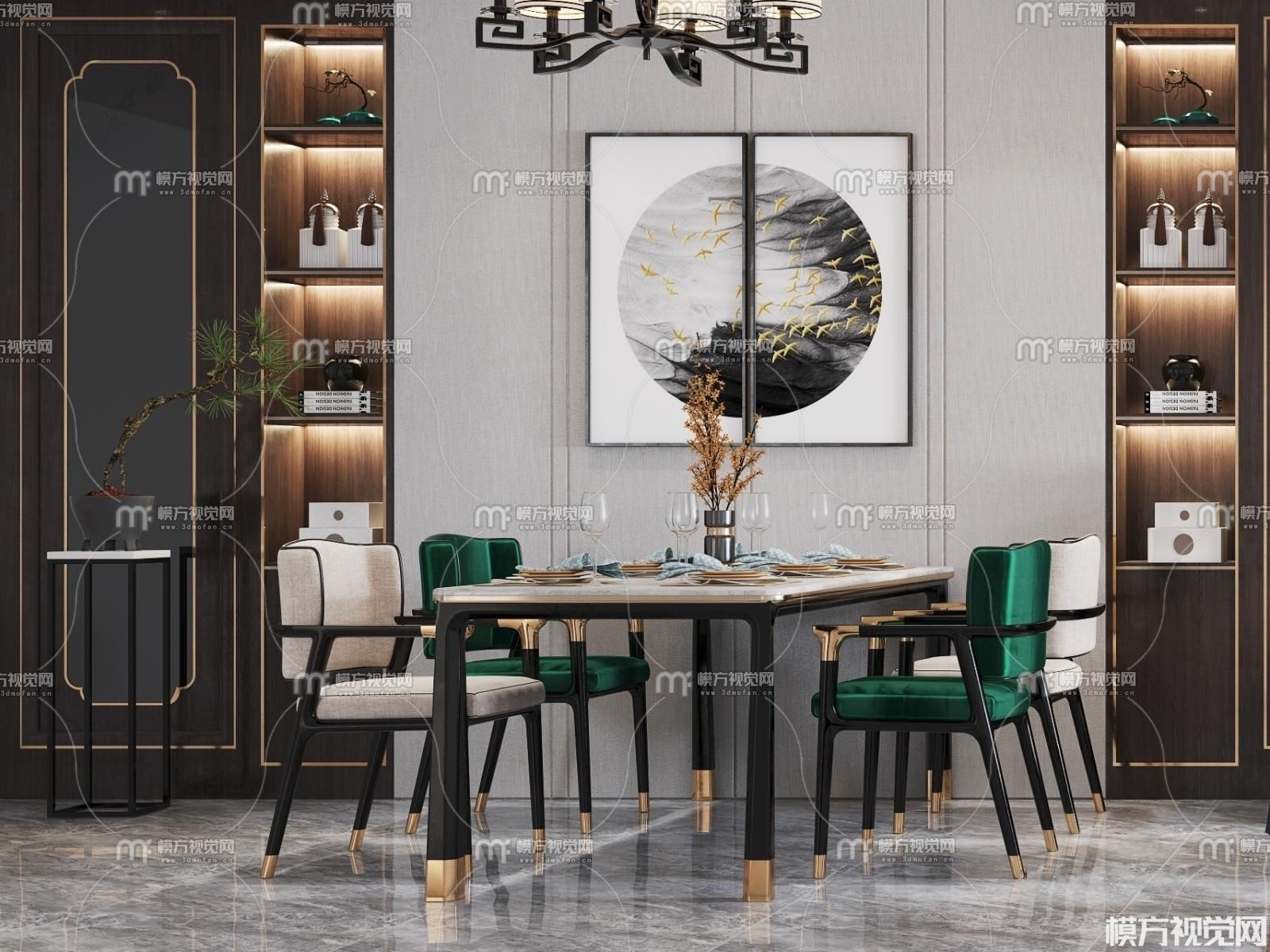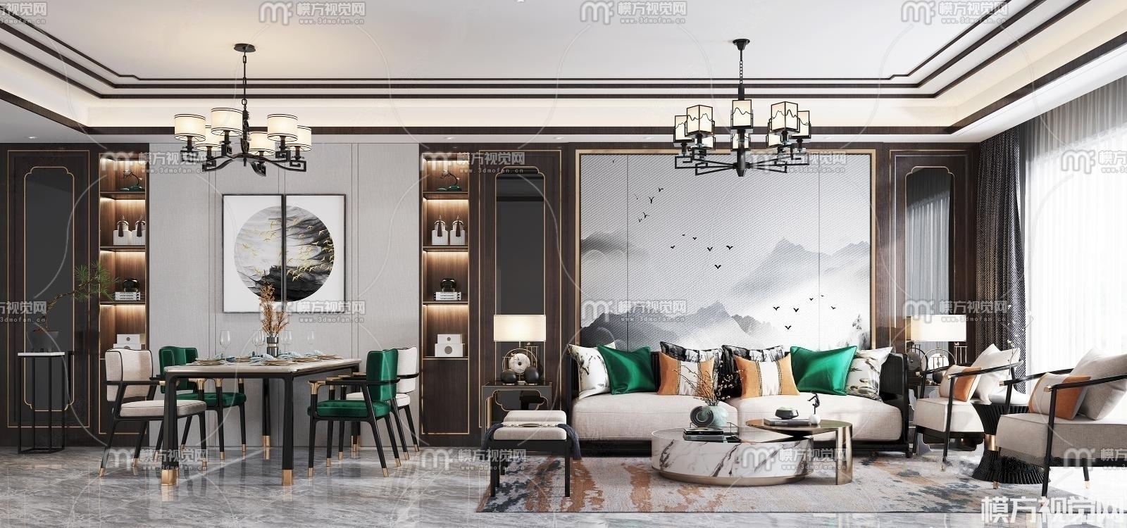 新中式客餐厅3D模型(ID:0008866)