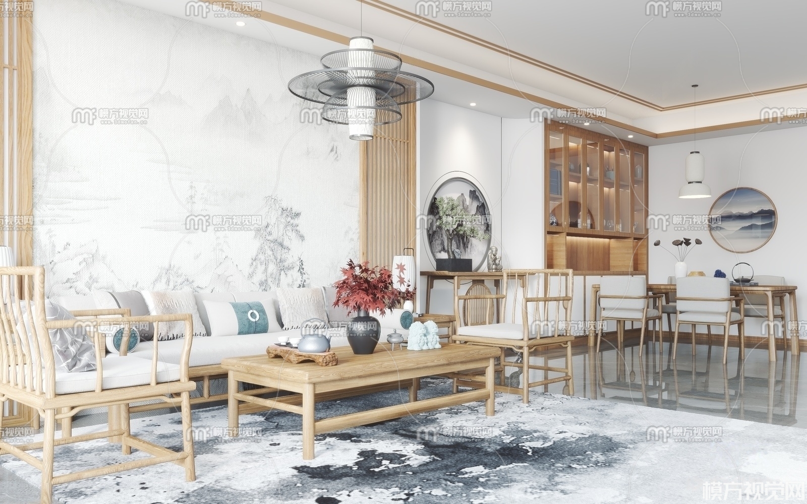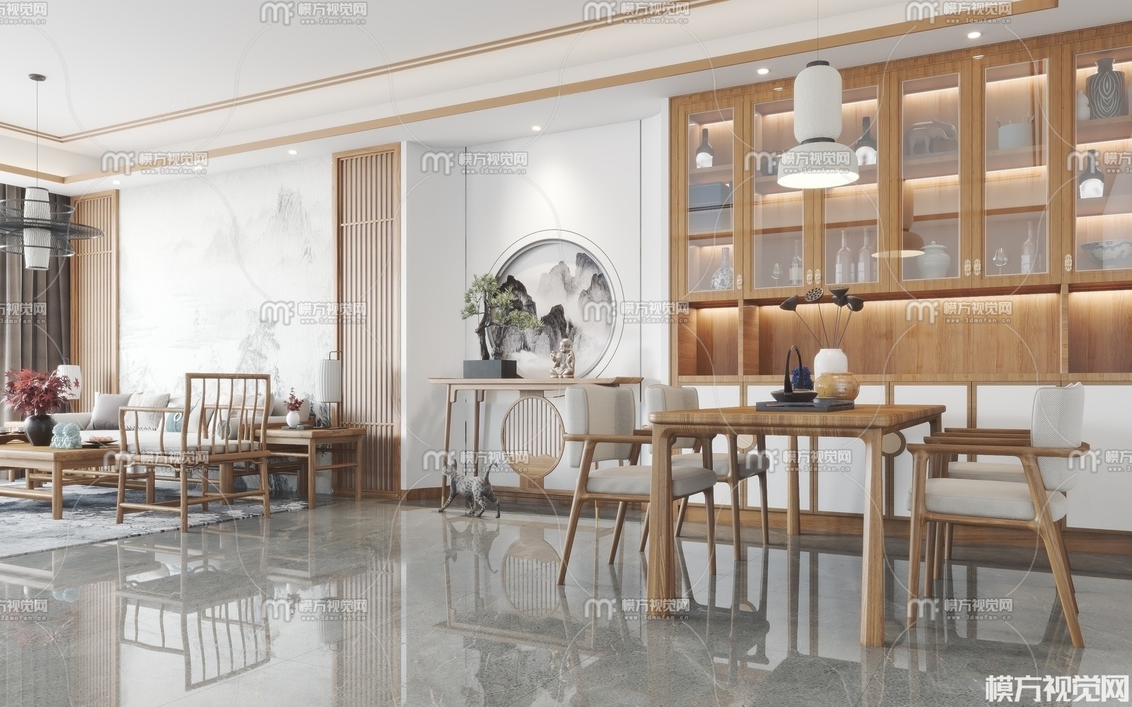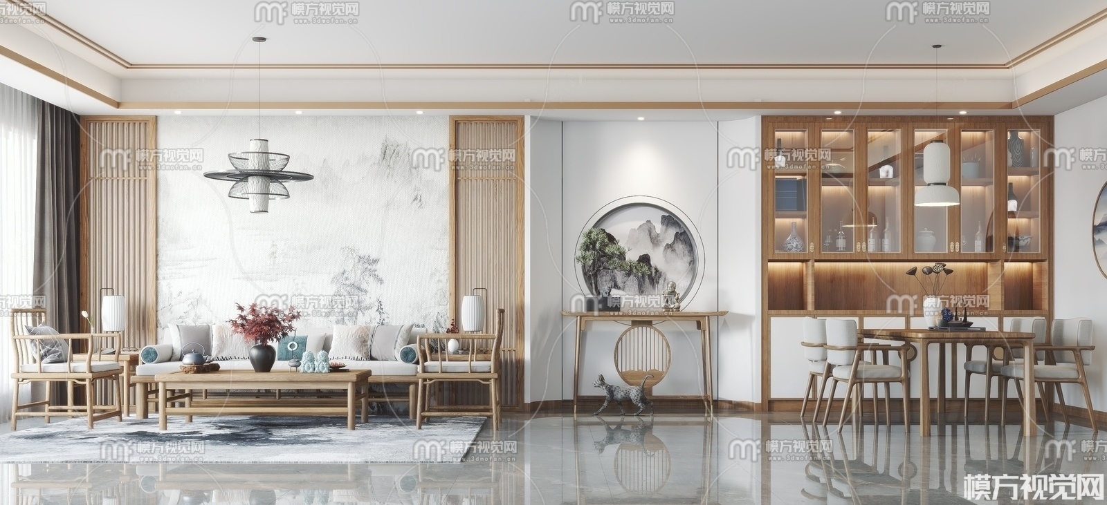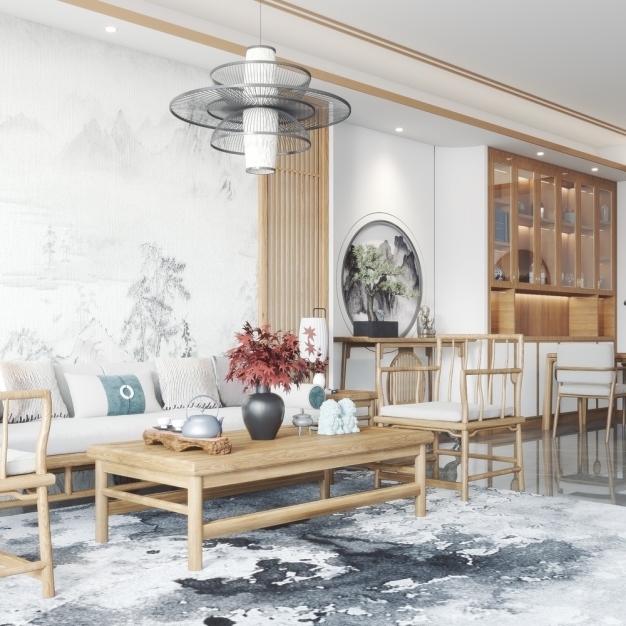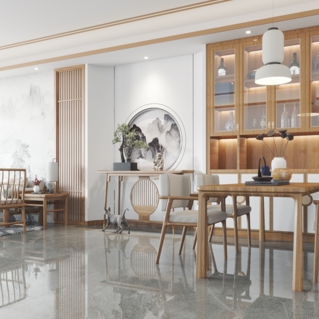 新中式客餐厅3D模型(ID:0008873)
