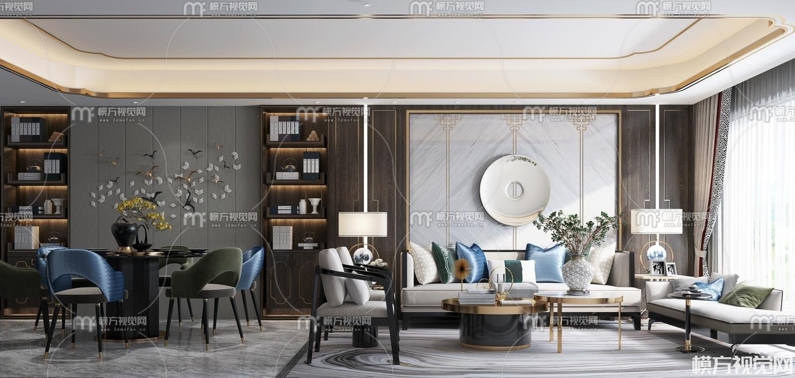 新中式客餐厅3D模型(ID:0008874)