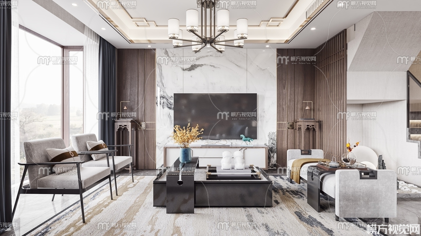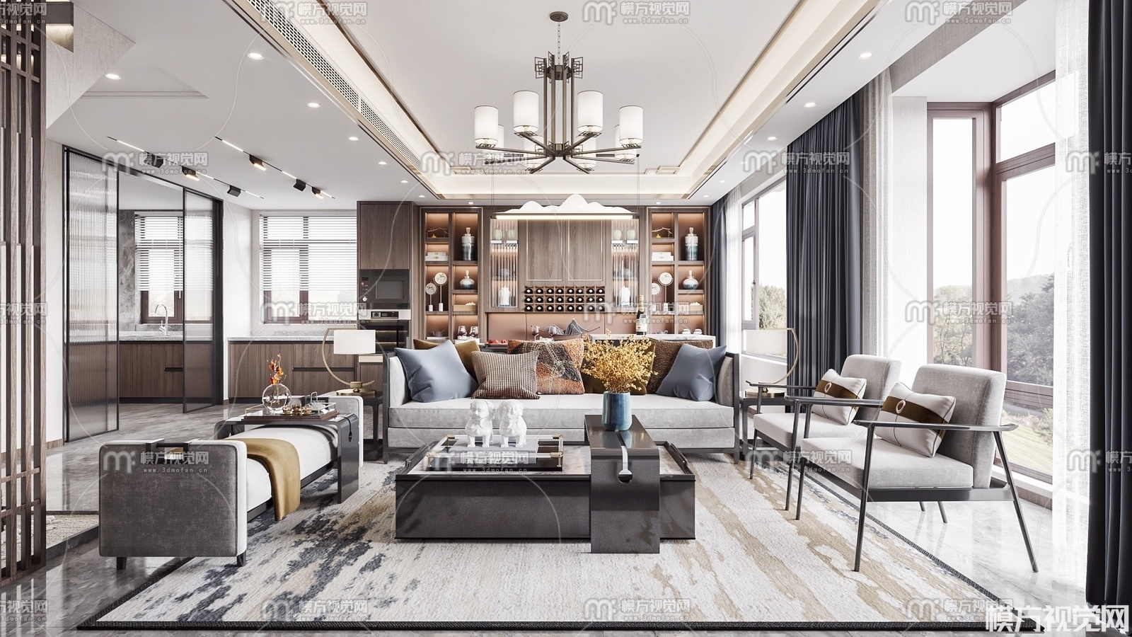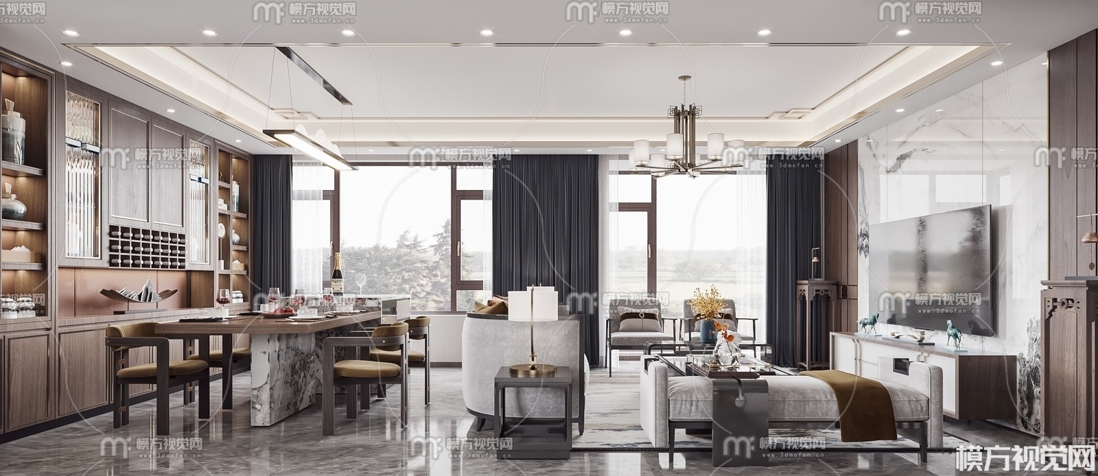 新中式客餐厅3D模型(ID:0008875)