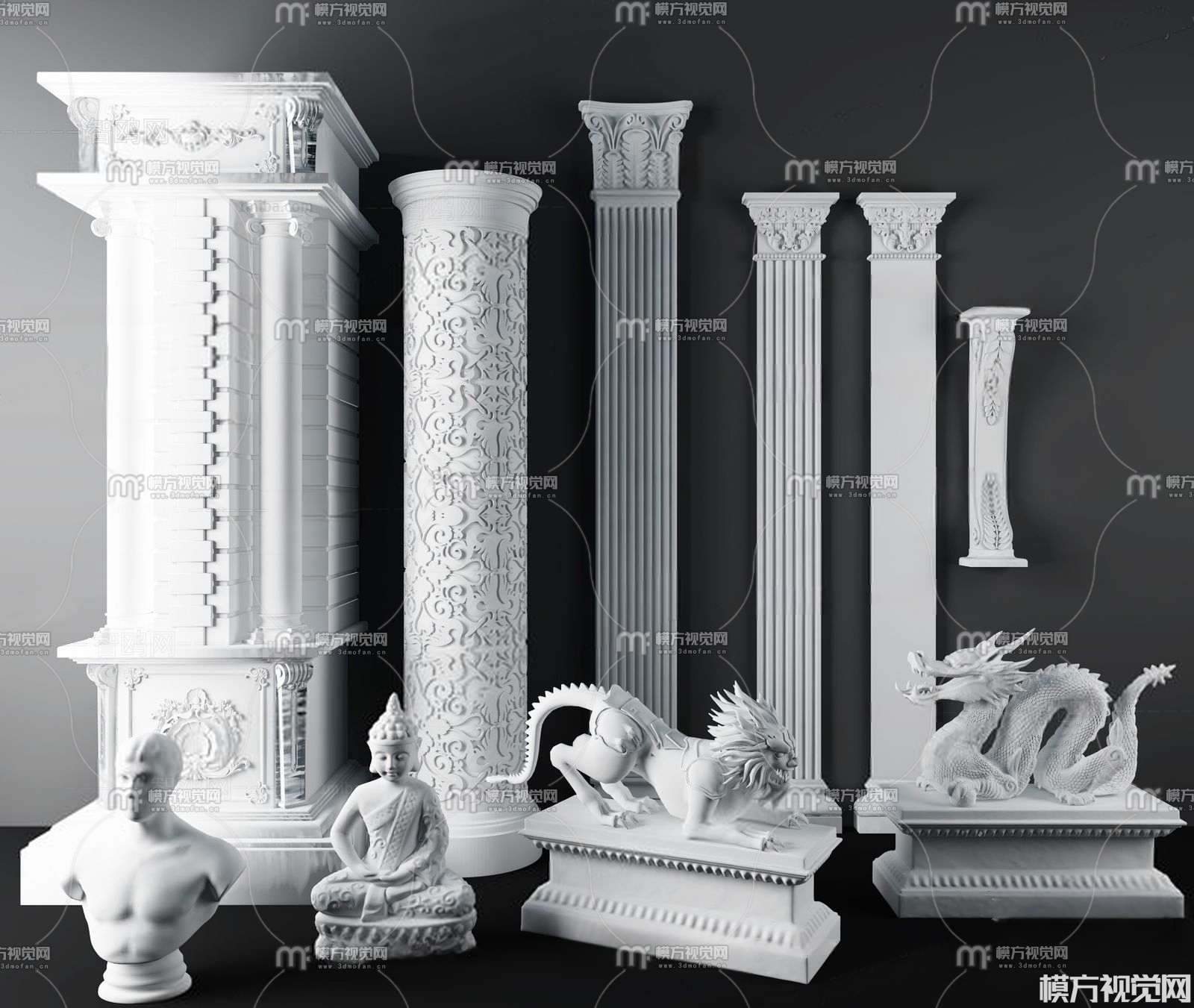 欧式石膏柱 罗马柱3D模型(ID:0008894)