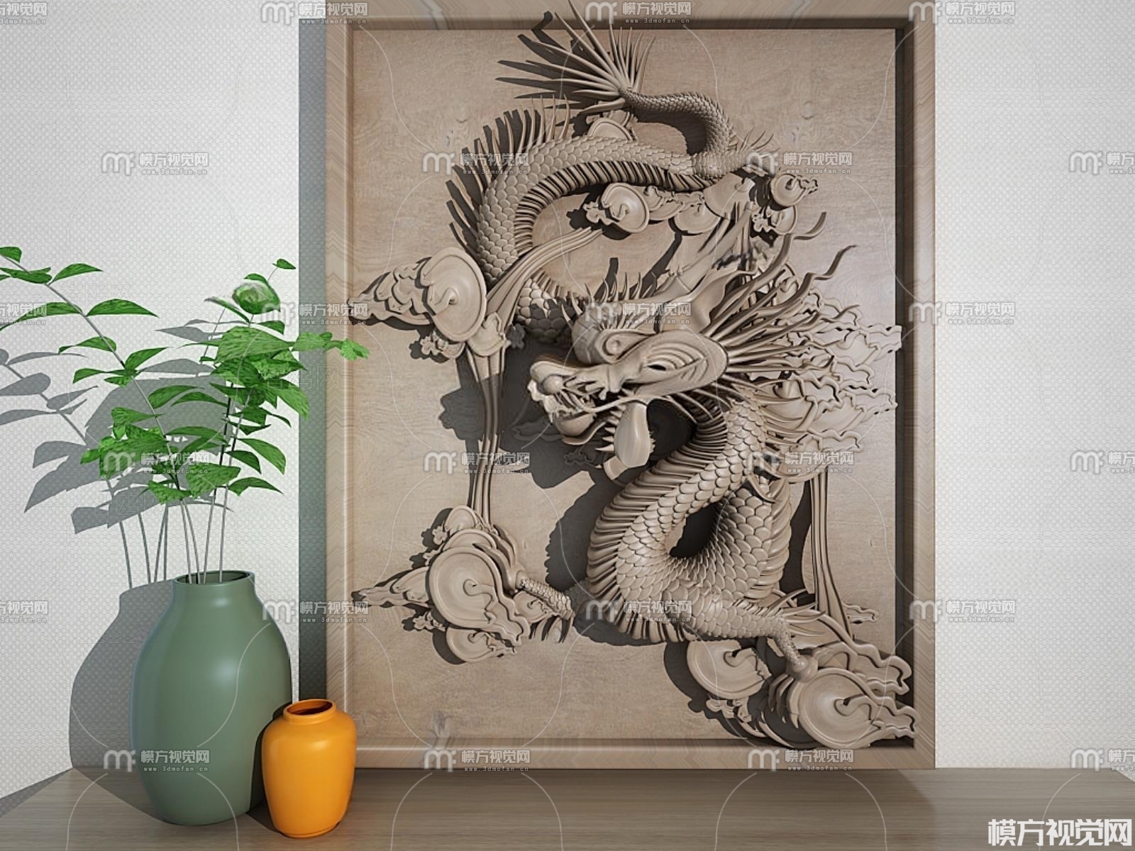 新中式龙雕塑摆件3D模型(ID:0008902)