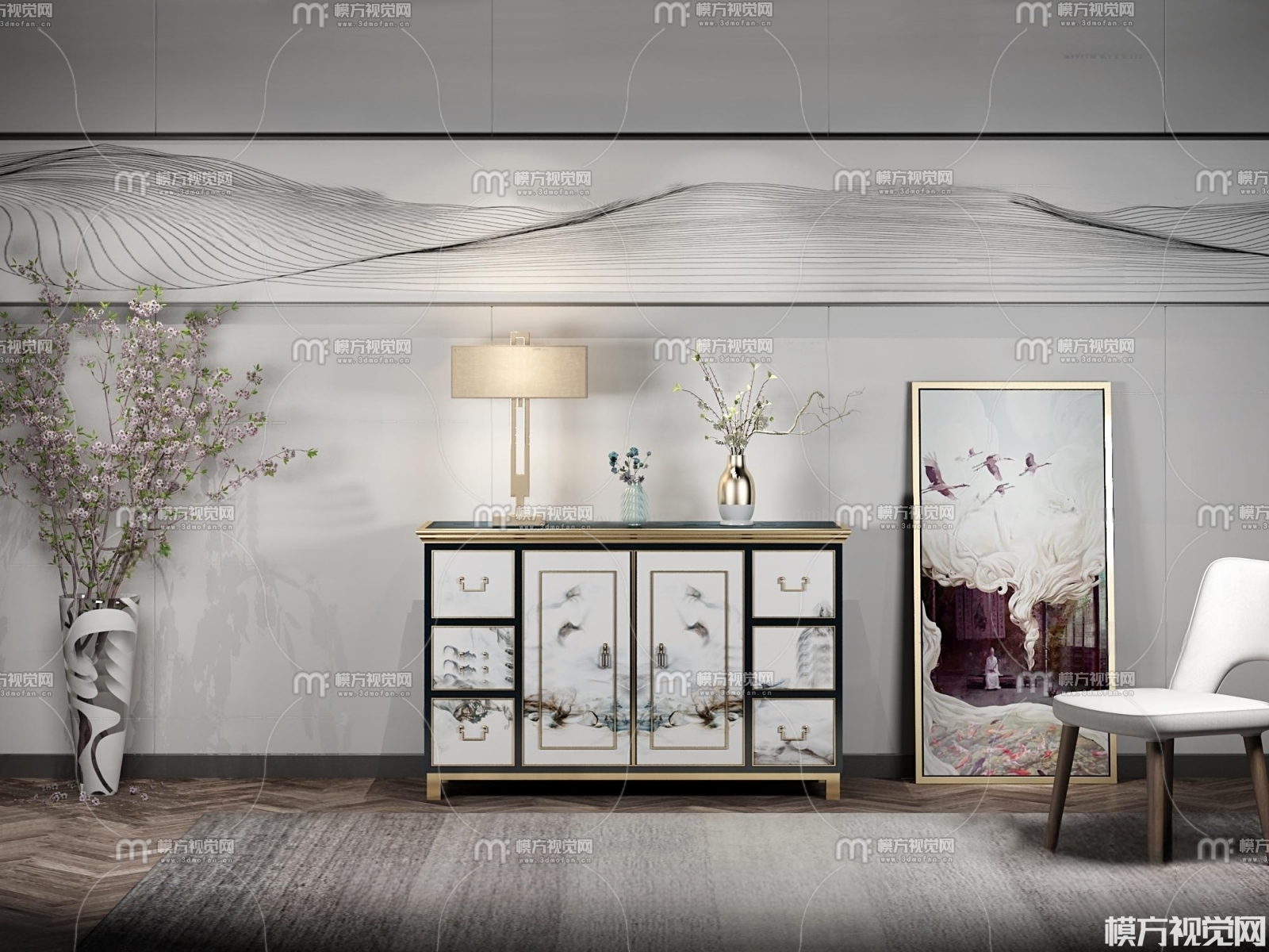 新中式边柜 花瓶摆件3D模型(ID:0008906)