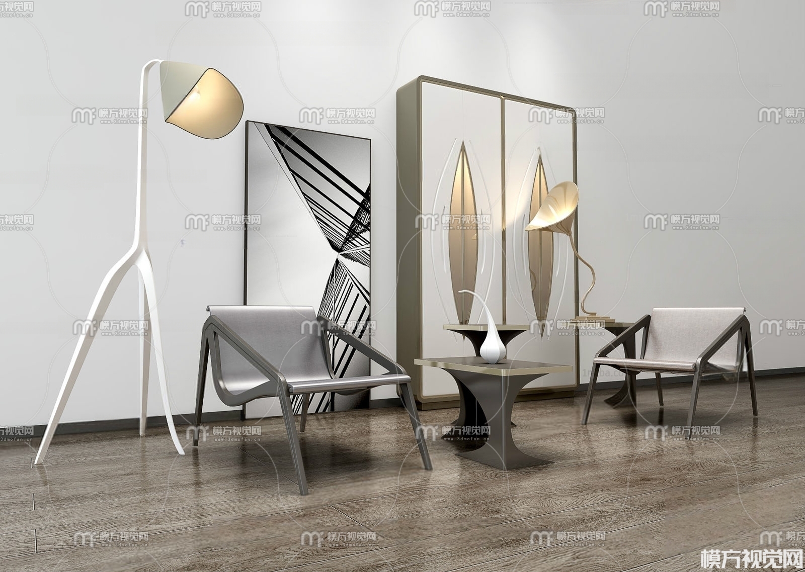 现代休闲椅 落地灯 柜子3D模型(ID:0008939)