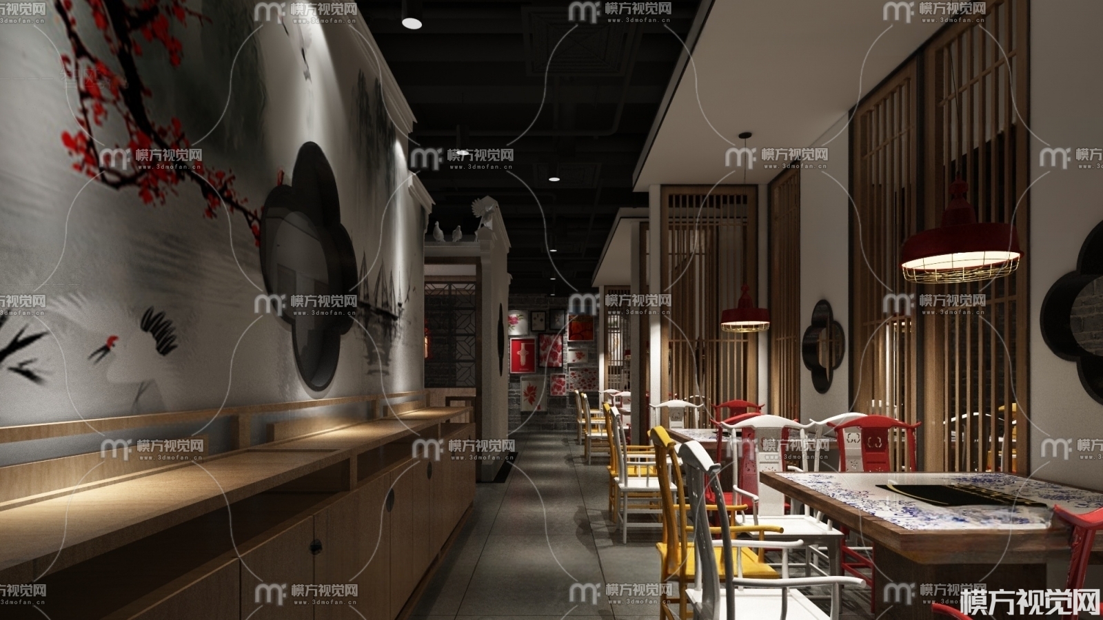 新中式餐厅3D模型(ID:0008945)