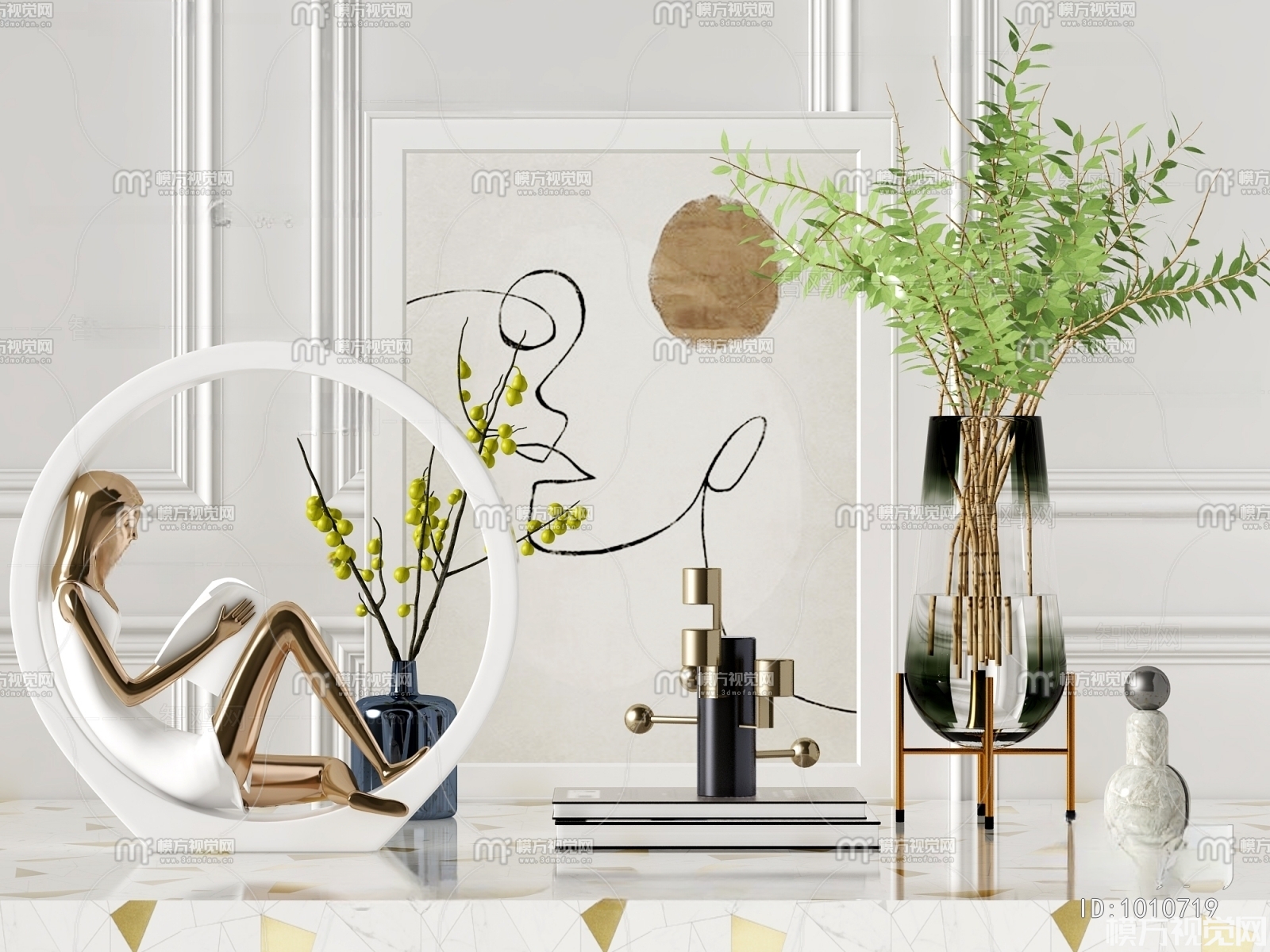 现代花瓶 雕塑 装饰画3D模型(ID:0008967)