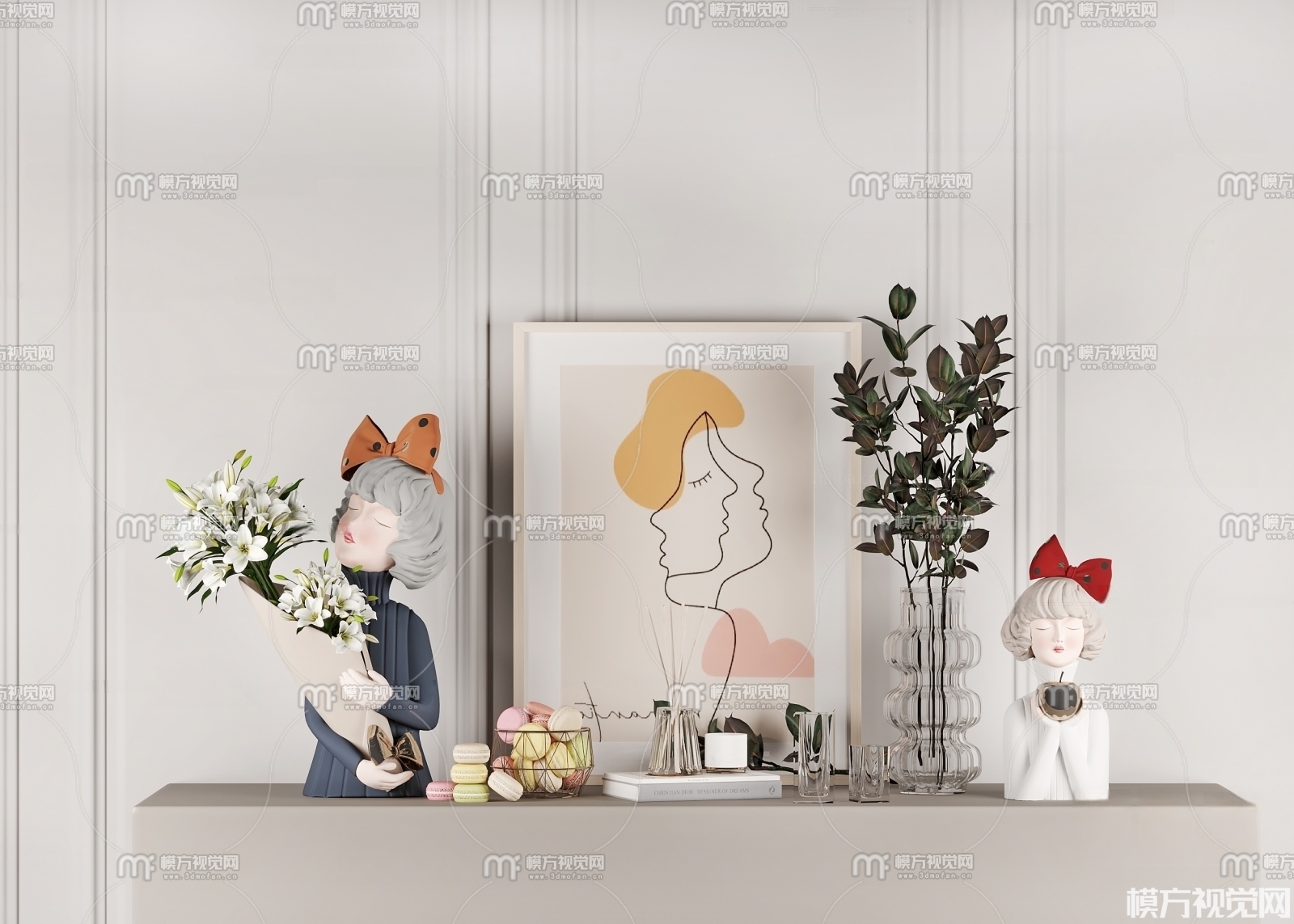 现代装饰画 雕塑 花瓶摆件3D模型(ID:0008971)