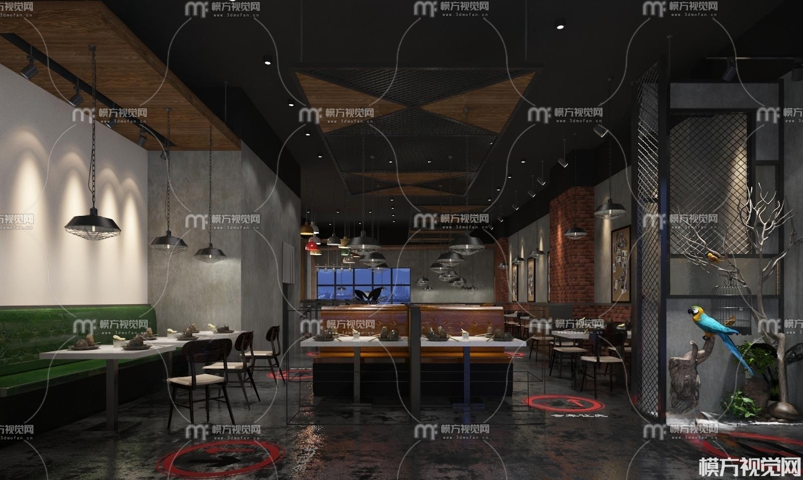 工业风餐厅3D模型(ID:0008984)