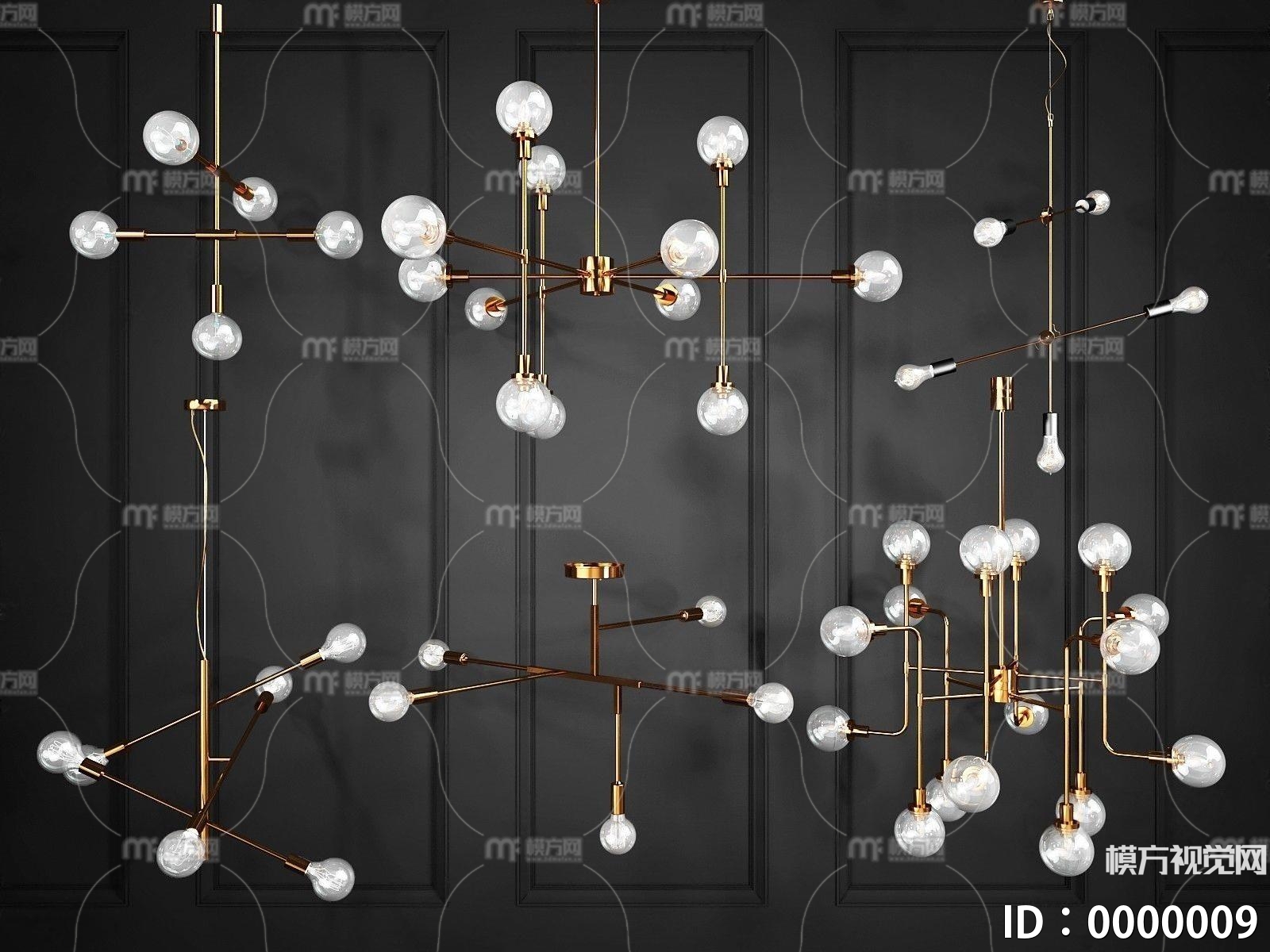 现代轻奢玻璃吊灯3d模型(ID:0000009)
